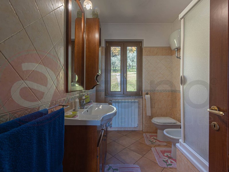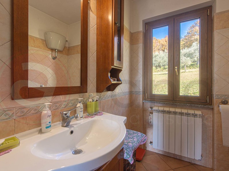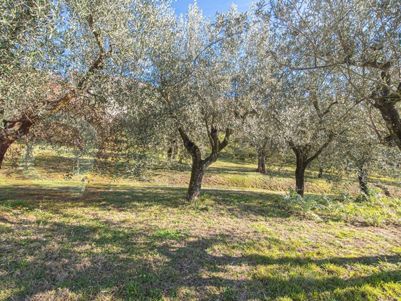 Allesterno la proprietà include vari accessori, tra cui una legnaia, e un terreno di circa 9.000 mq coltivato con ulivi e alberi da frutto, ideale sia per uso agricolo che per chi desidera grandi spazi privati.
