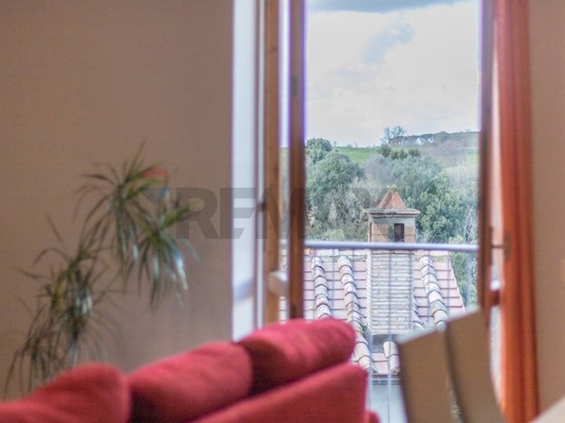 Dal living si accede al balcone, impreziosito dalle caratteristiche persiane rosse che donano personalità alla facciata.