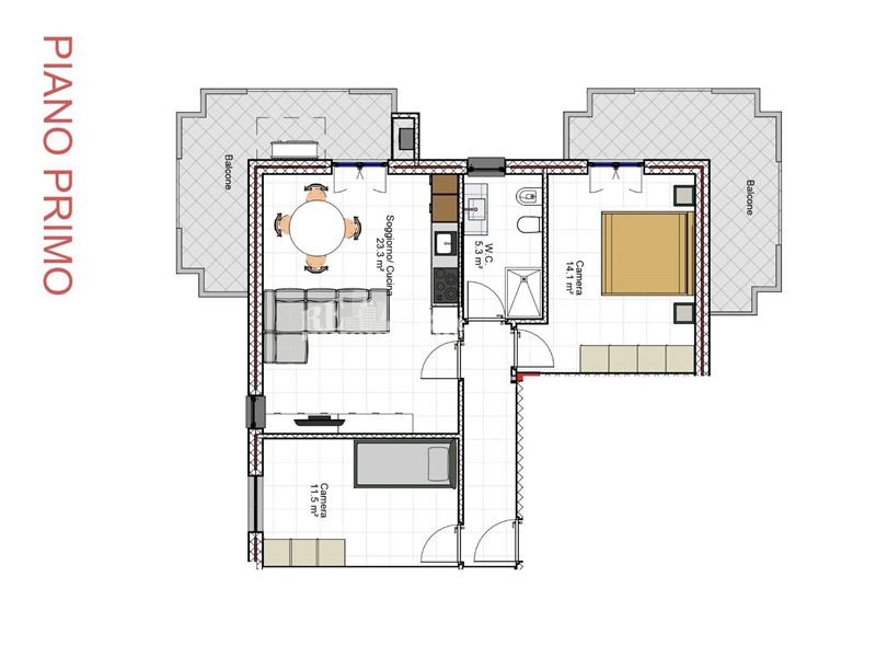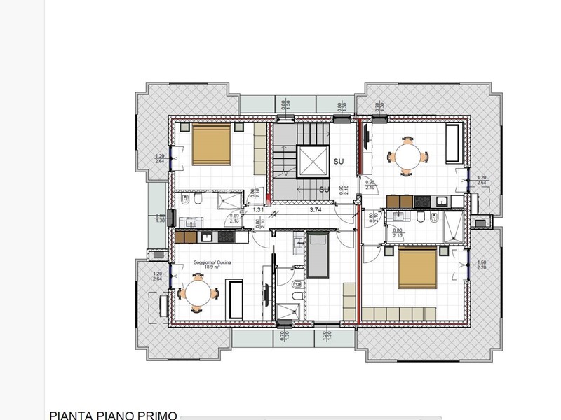 Opzione 2: Appartamento 72 mq al piano primo con ascensore composto da ingresso su ampio soggiono/cucina, due camere da letto matrimoniali, un bagno, due balconi per complessivi mq 23. Completa la proprietà un posto auto scoperto. Esposizione sud - est - ovest.