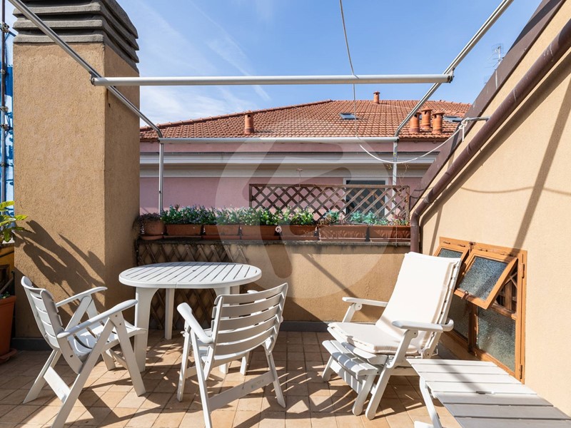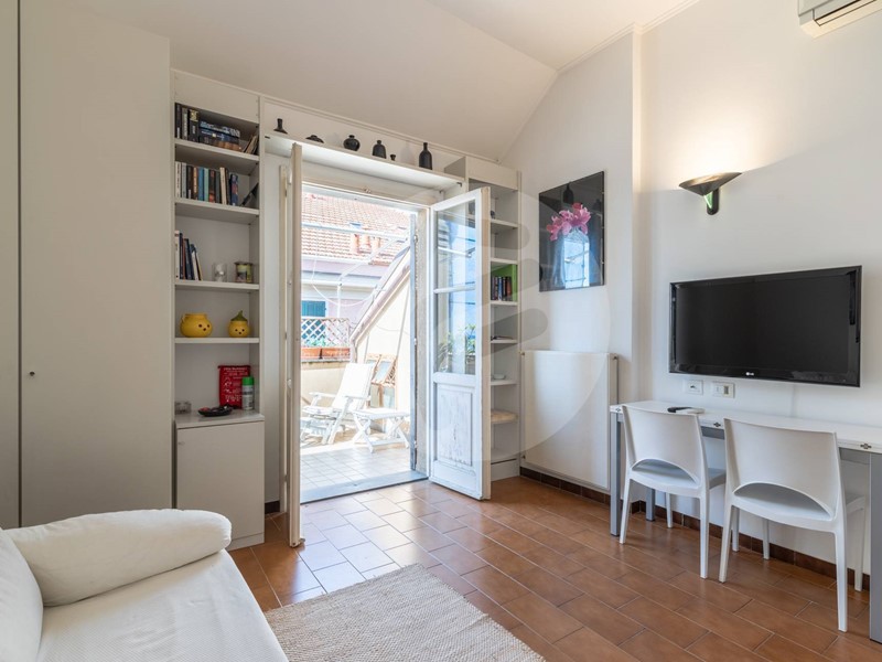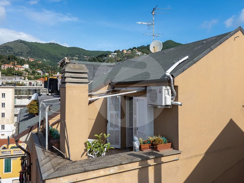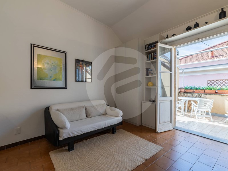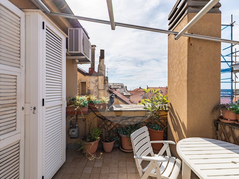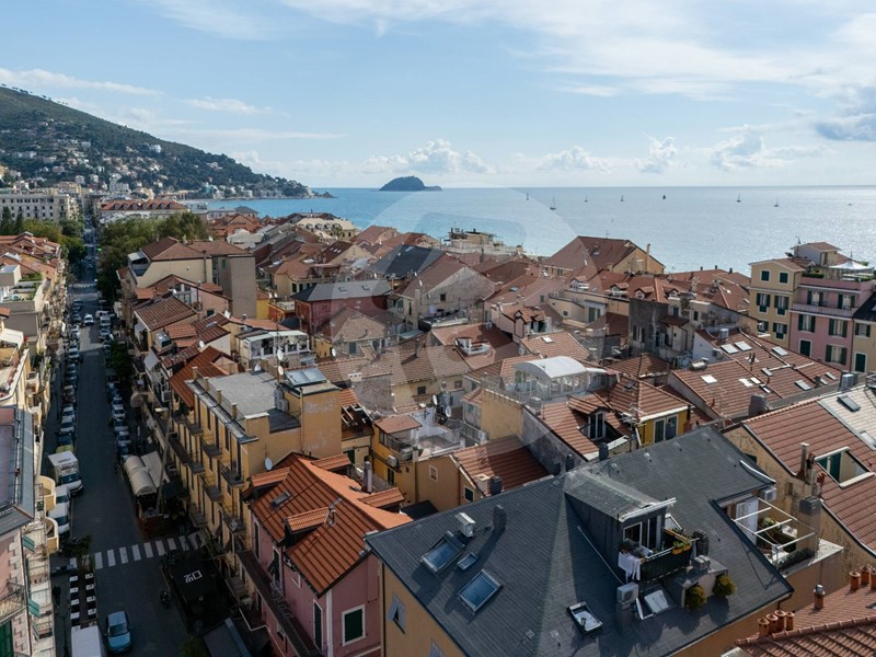 Nel cuore del centro storico ad un passo dal molo proponiamo in stabile d'epoca servito da ascensore, ultimo piano, suggestivo e luminosissimo attico leggermente mansardato composto da: ingresso, ampio soggiorno con cucina vista, due camere matrimoniali, doppi servizi. Ampie finestrature con gradevole apertura di vista sulla collina. Dal soggiorno si accede ad un ampio terrazzo quadrato, con ottima esposizione al sole ed eccellente privacy, che si affaccia sul centro storico di Alassio e gode di un'incantevole vista mare. UNICO!