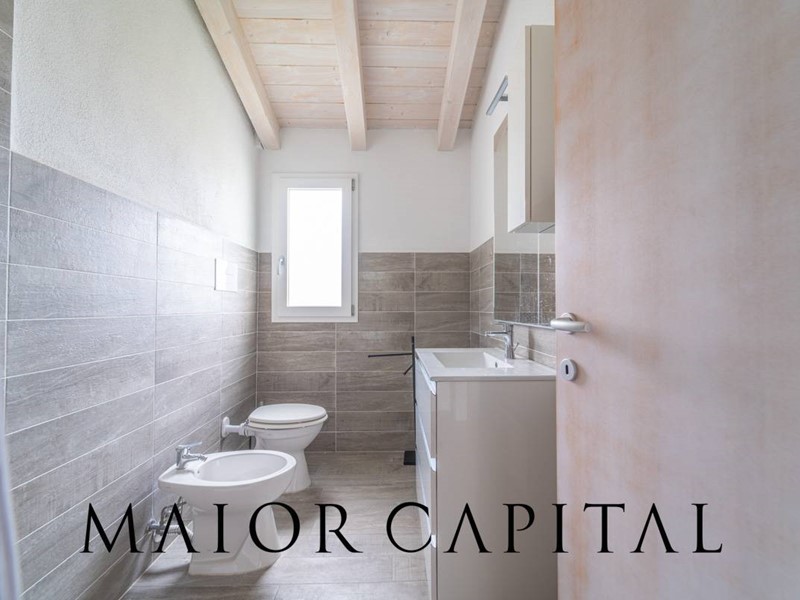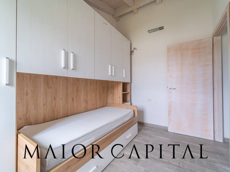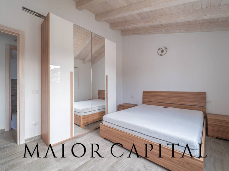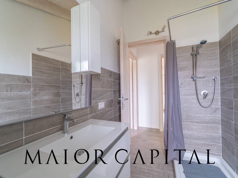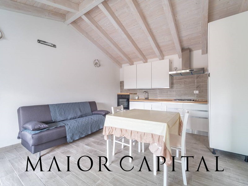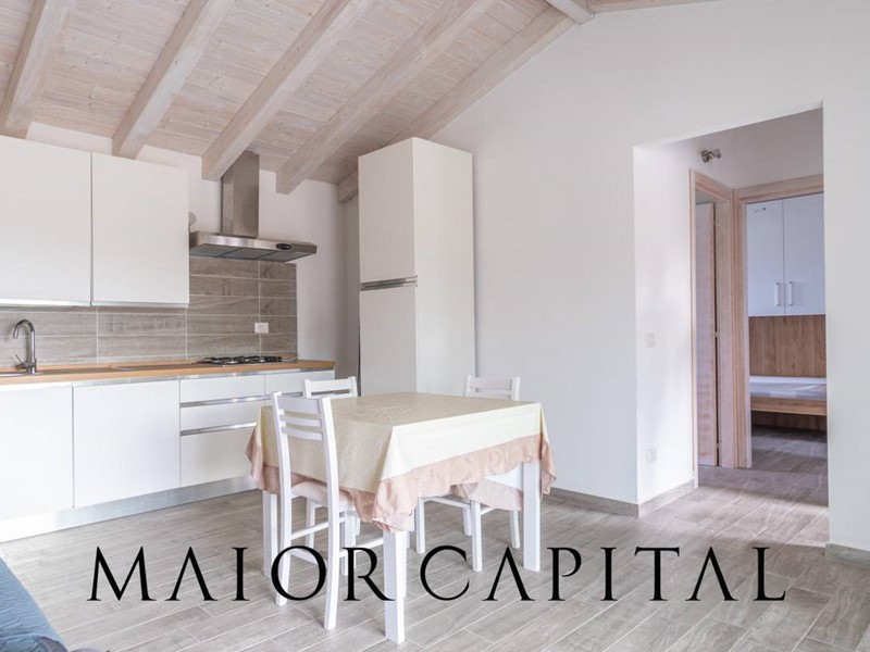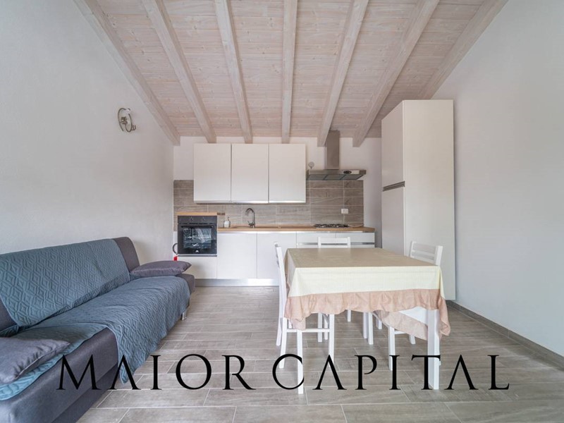 Laccesso allappartamento avviene tramite una comoda veranda coperta e vivibile, ideale per pranzi allaperto o momenti di relax. Gli interni, moderni e ben curati, si aprono su un luminoso soggiorno con angolo cottura, valorizzato da soffitti con travi a vista dai toni chiari, che donano freschezza e accoglienza allambiente. La zona notte comprende due camere da letto, una matrimoniale e una singola, facilmente adattabile anche a doppia con letto a cassettone o a castello. Completa il piano un bagno finestrato con doccia, funzionale e ben rifinito.