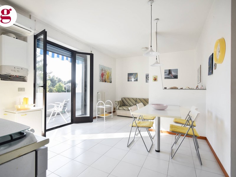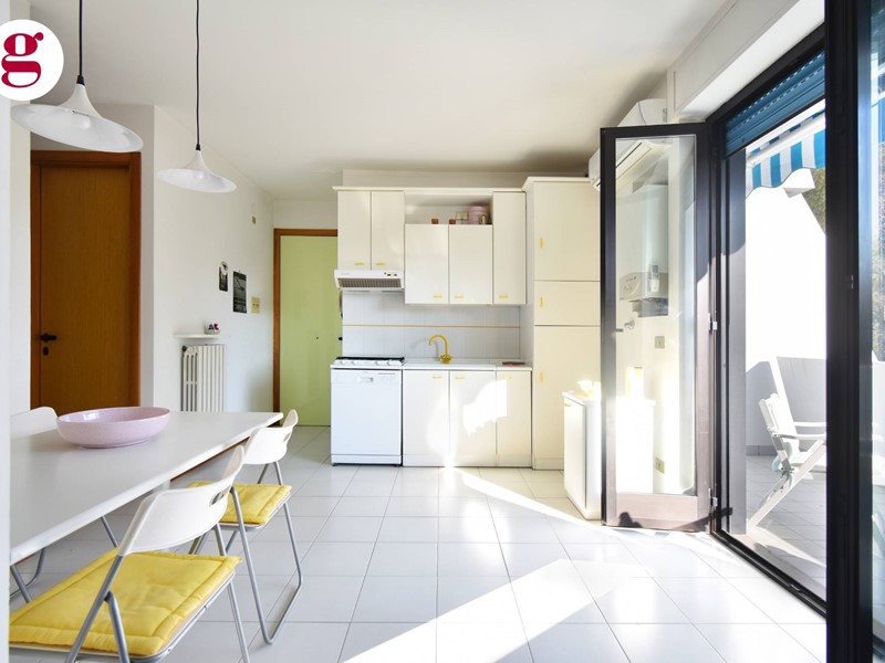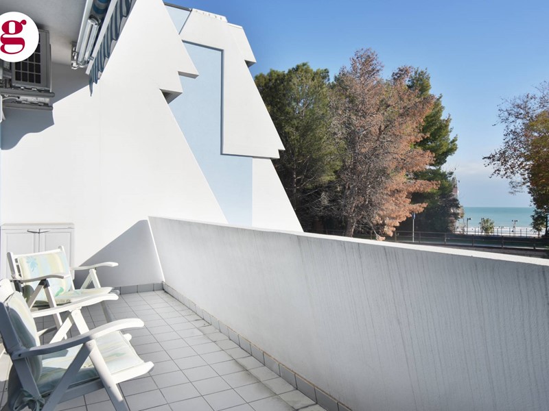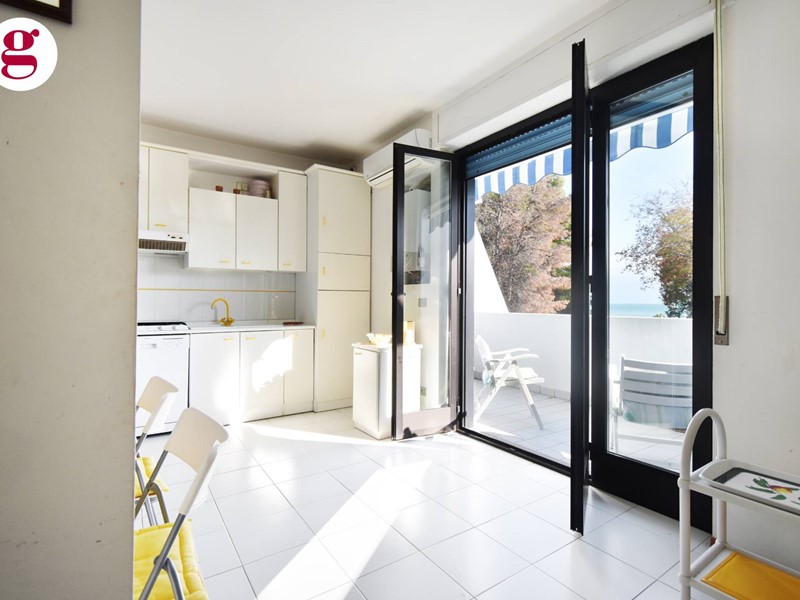 Dal soggiorno si accede al terrazzo con piacevole vista mare, ideale per momenti di relax allaperto.