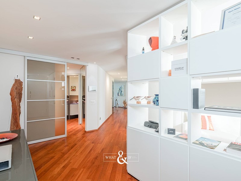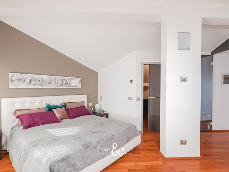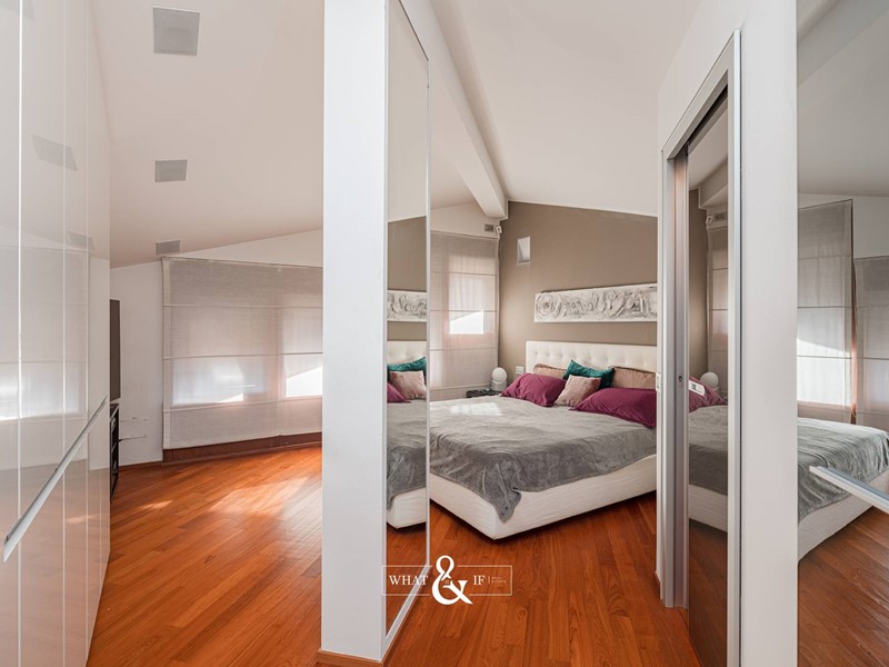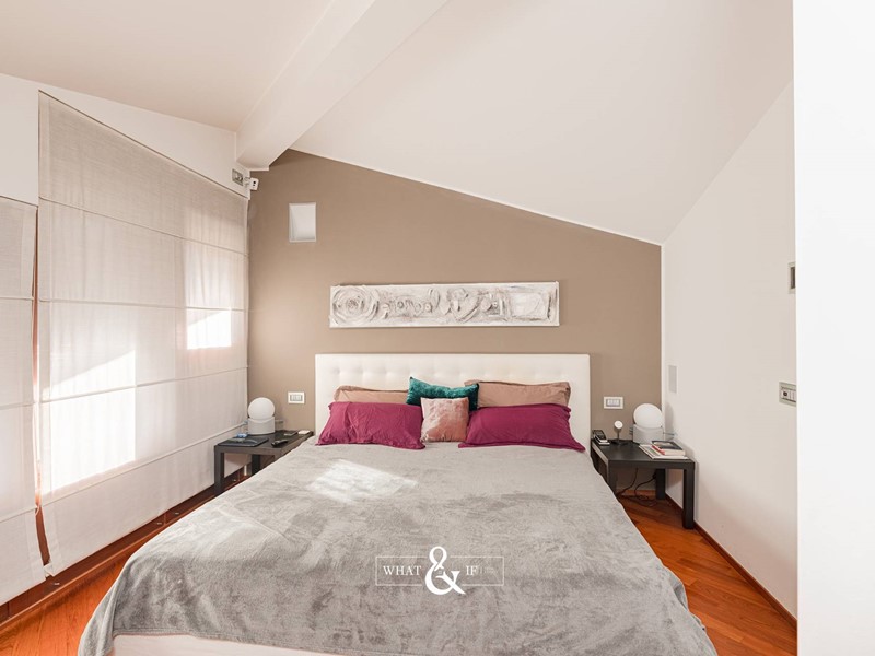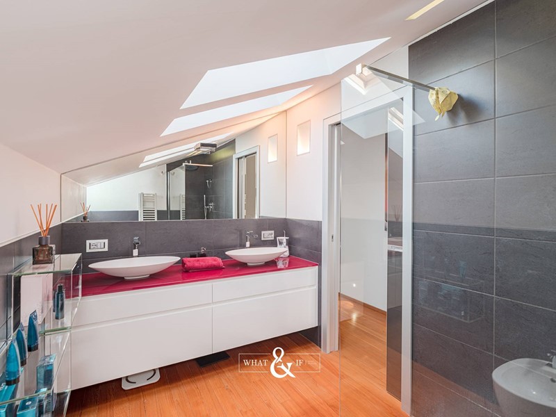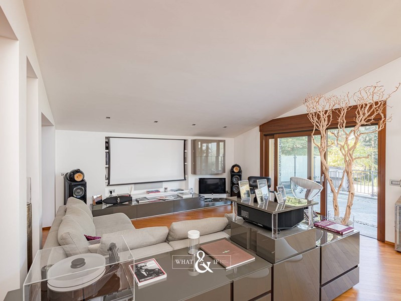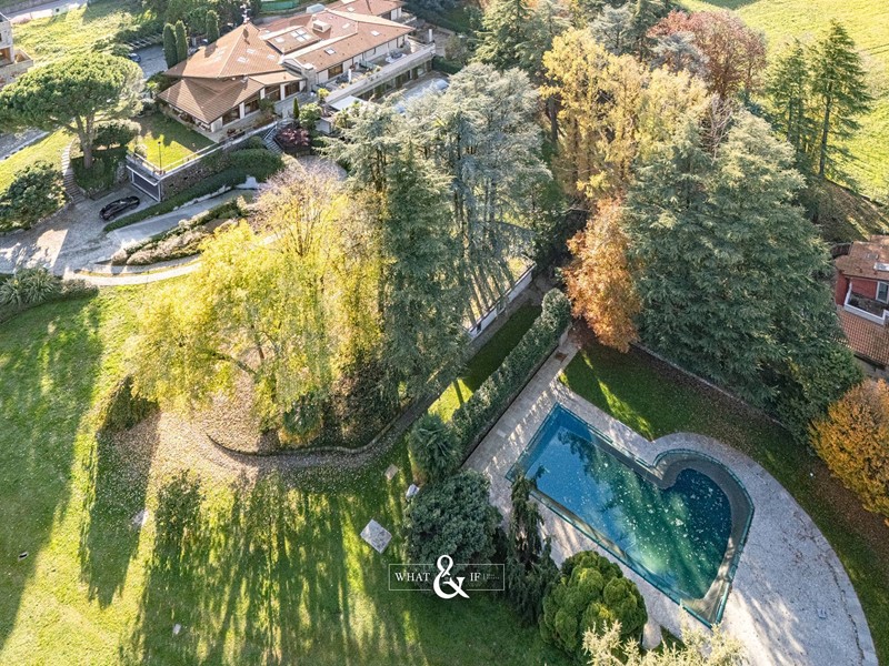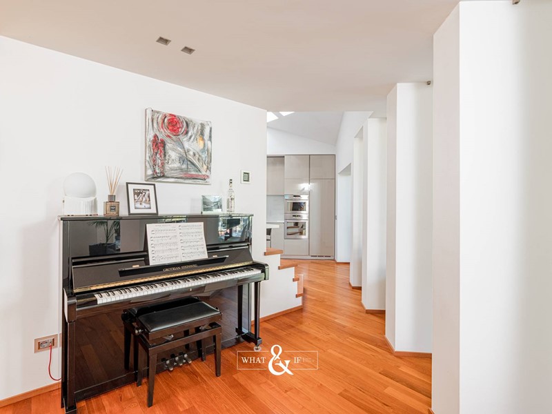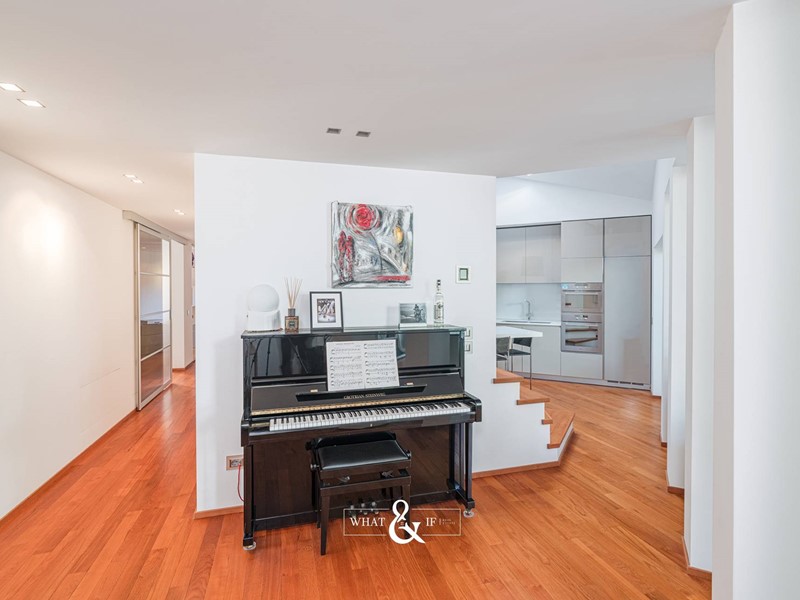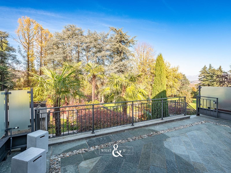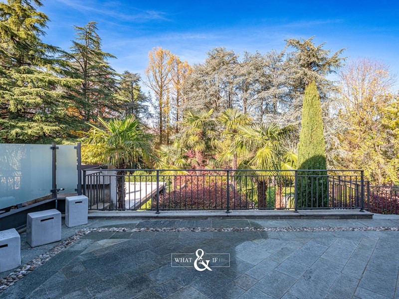 In una bellissima villa degli anni 80, suddivisa in 7 unità immobiliari, proponiamo appartamento di design con ampio terrazzo affacciato sul parco della residenza. Il complesso immobiliare dispone di un parco condominiale di circa 18.000 mq con abeti, area verde, piscina scoperta e un piazzale ad uso parcheggio riservato ai proprietari ed ai loro ospiti. La villa è stata oggetto di ristrutturazione nel 2010. Il piano interrato della residenza ospita un locale fitness, un locale sauna con bagno e doccia, una zona relax con due lettini in legno e con cromoterapia. L'appartamento è composto da un ampio ingresso con una libreria che delimita una zona ospiti completa di divano-letto, bagno con doccia e angolo lavanderia, alto e spazioso soggiorno con meraviglioso affaccio su parte del parco condominiale attraverso le grandi vetrate che permettono alla luce naturale di creare una atmosfera veramente accogliente, angolo cottura a vista, terrazzo e ripostiglio, al piano superiore collegato da scala centrale rivestita in legno troviamo la camera matrimoniale con armadio e cabina armadio su misura (spazio armadi davvero importante), bagno con doccia e doppio lavabo e una zona studio, aperta sulla scala (con possibilità di creare una cameretta chiusa e dotata di velux). Il terrazzo privato è collegato direttamente al giardino condominiale tramite una comoda scala in pietra, rendendo immediato l'accesso alla piscina e all'area verde condominiale. La proprietà dispone di un box doppio in larghezza, un box doppio in lunghezza e due boxes singoli (pertinenziali) per un totale di 6 posti macchina coperti (prezzo a parte per un totale di 60.000). L'appartamento può essere acquistato compreso di arredamento (prezzo a parte).