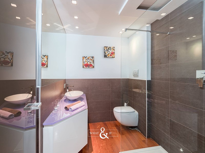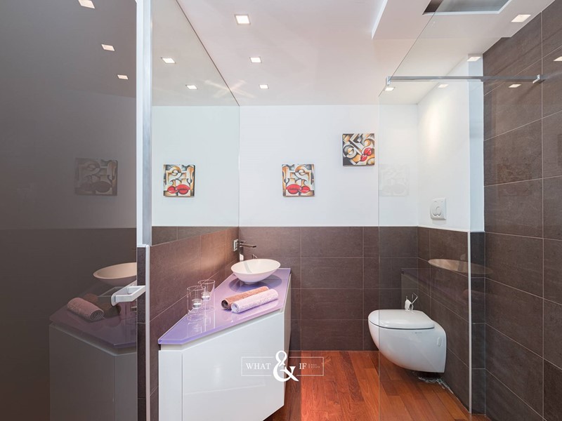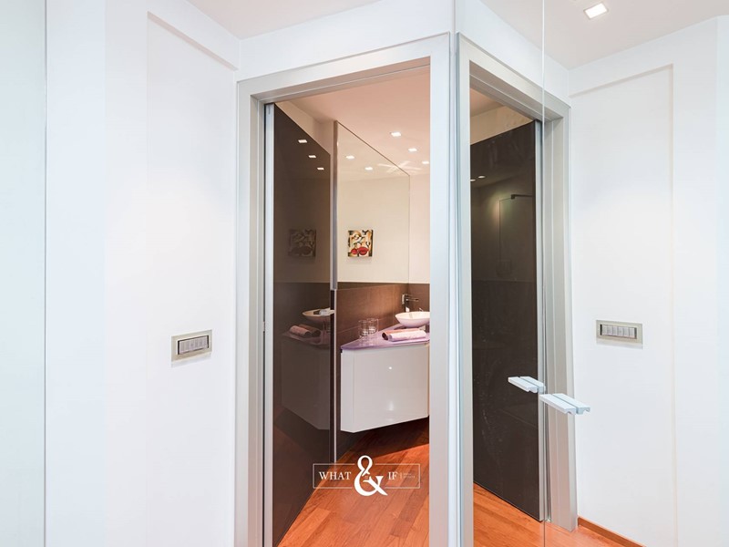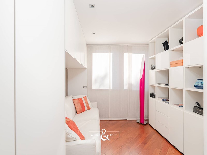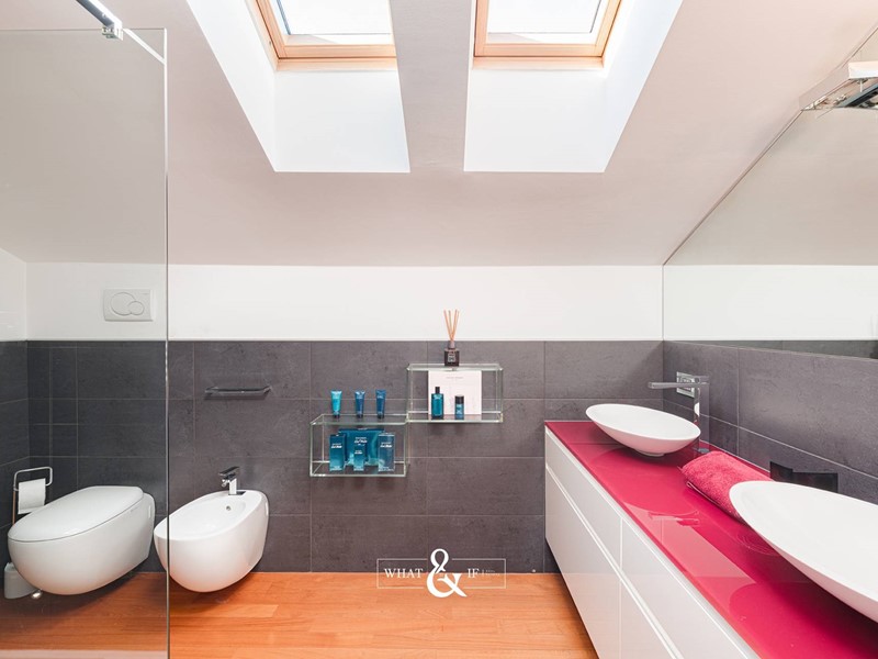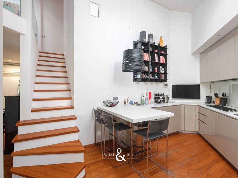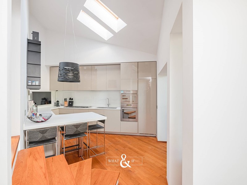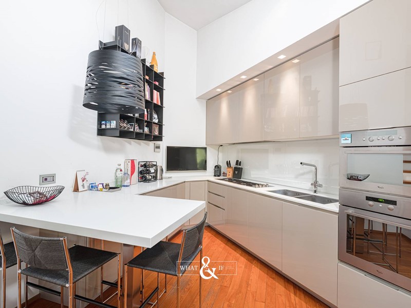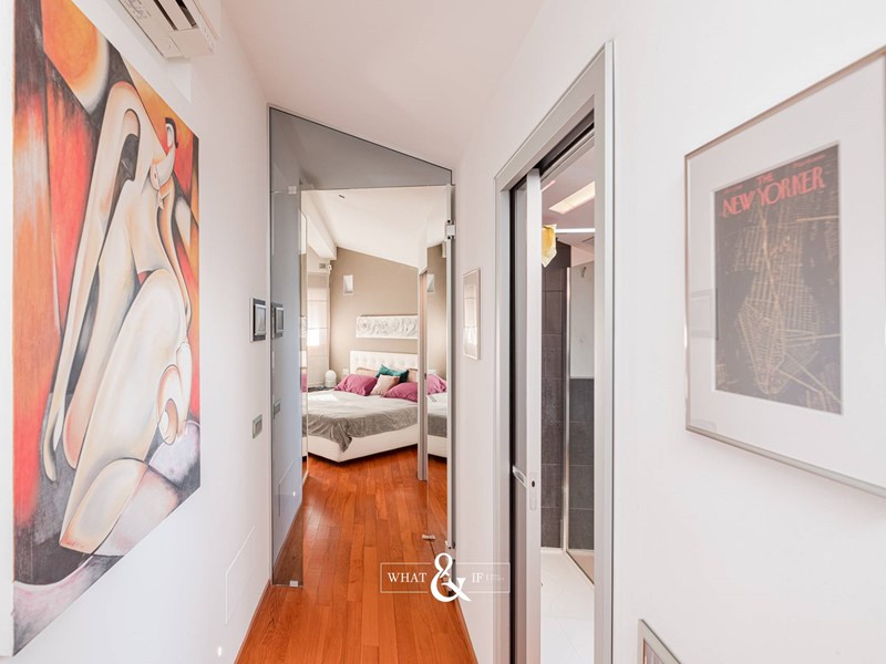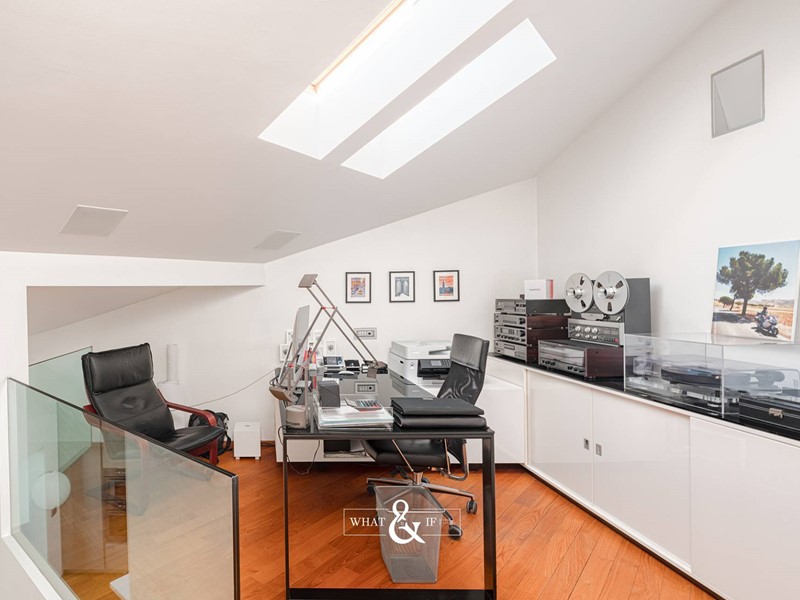In una bellissima villa degli anni 80, suddivisa in 7 unità immobiliari, proponiamo appartamento di design con ampio terrazzo affacciato sul parco della residenza. Il complesso immobiliare dispone di un parco condominiale di circa 18.000 mq con abeti, area verde, piscina scoperta e un piazzale ad uso parcheggio riservato ai proprietari ed ai loro ospiti. La villa è stata oggetto di ristrutturazione nel 2010. Il piano interrato della residenza ospita un locale fitness, un locale sauna con bagno e doccia, una zona relax con due lettini in legno e con cromoterapia. L'appartamento è composto da un ampio ingresso con una libreria che delimita una zona ospiti completa di divano-letto, bagno con doccia e angolo lavanderia, alto e spazioso soggiorno con meraviglioso affaccio su parte del parco condominiale attraverso le grandi vetrate che permettono alla luce naturale di creare una atmosfera veramente accogliente, angolo cottura a vista, terrazzo e ripostiglio, al piano superiore collegato da scala centrale rivestita in legno troviamo la camera matrimoniale con armadio e cabina armadio su misura (spazio armadi davvero importante), bagno con doccia e doppio lavabo e una zona studio, aperta sulla scala (con possibilità di creare una cameretta chiusa e dotata di velux). Il terrazzo privato è collegato direttamente al giardino condominiale tramite una comoda scala in pietra, rendendo immediato l'accesso alla piscina e all'area verde condominiale. La proprietà dispone di un box doppio in larghezza, un box doppio in lunghezza e due boxes singoli (pertinenziali) per un totale di 6 posti macchina coperti (prezzo a parte per un totale di 60.000). L'appartamento può essere acquistato compreso di arredamento (prezzo a parte).