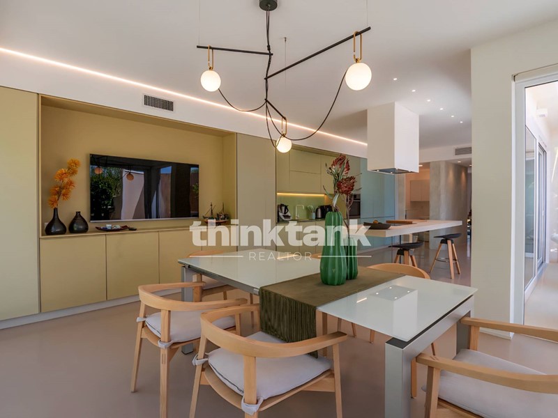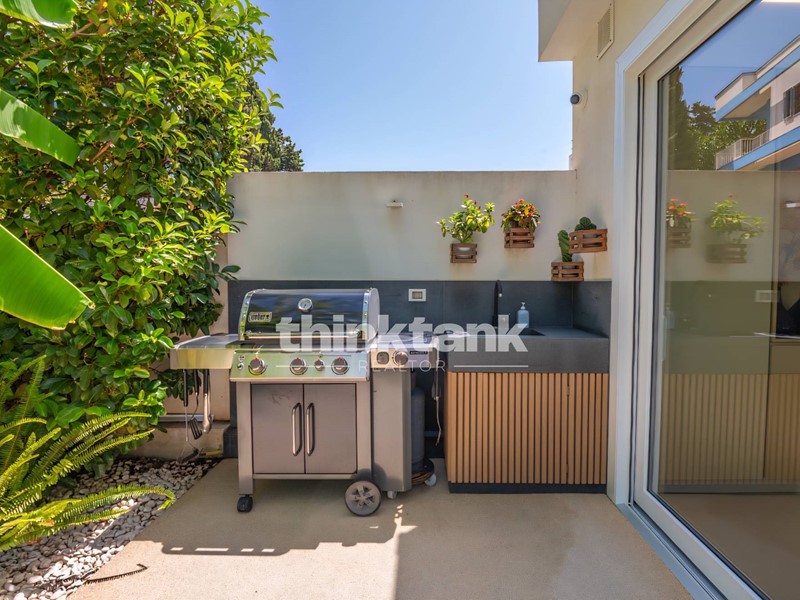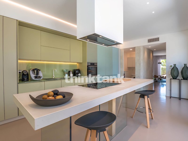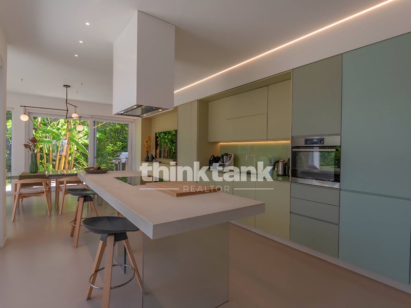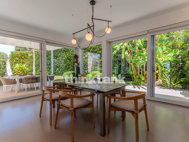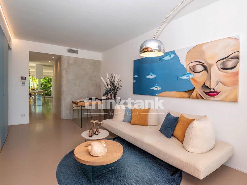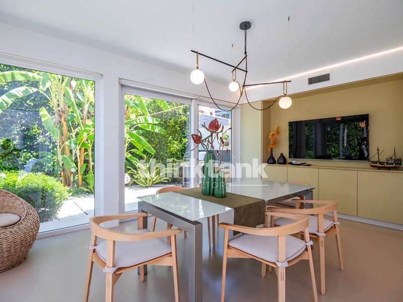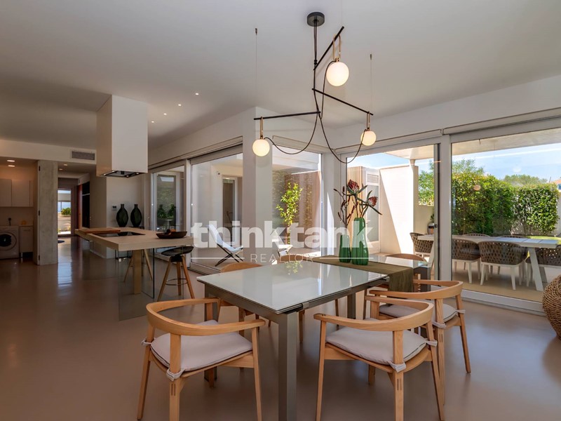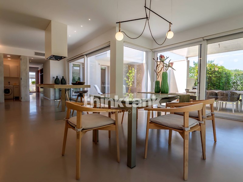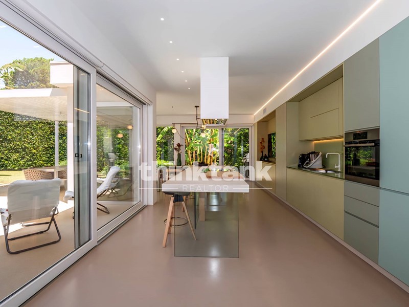 La zona living si sviluppa in una cucina di circa 50 mq, estremamente luminosa grazie alle ampie vetrate che si affacciano su un giardino privato di circa 300 mq.