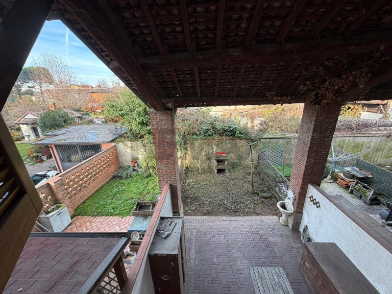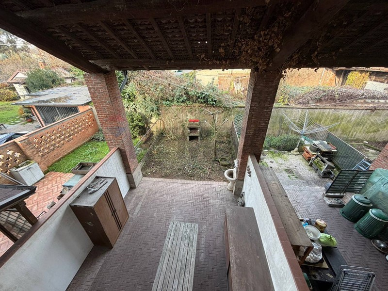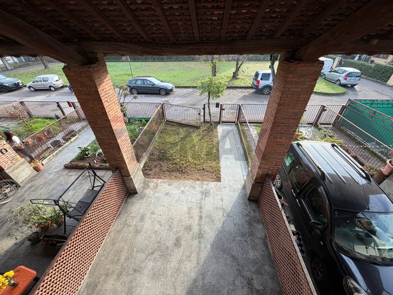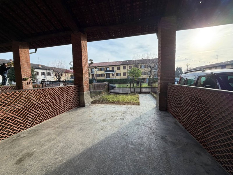 La proprietà è costituita da due ampi giardini con porticati fronte retro alla abitazione di cui quello posto sul fronte della stessa , recintato, vede un cancello carraio che permette il posizionamento interno alla proprietà di una automobile ( posto auto).