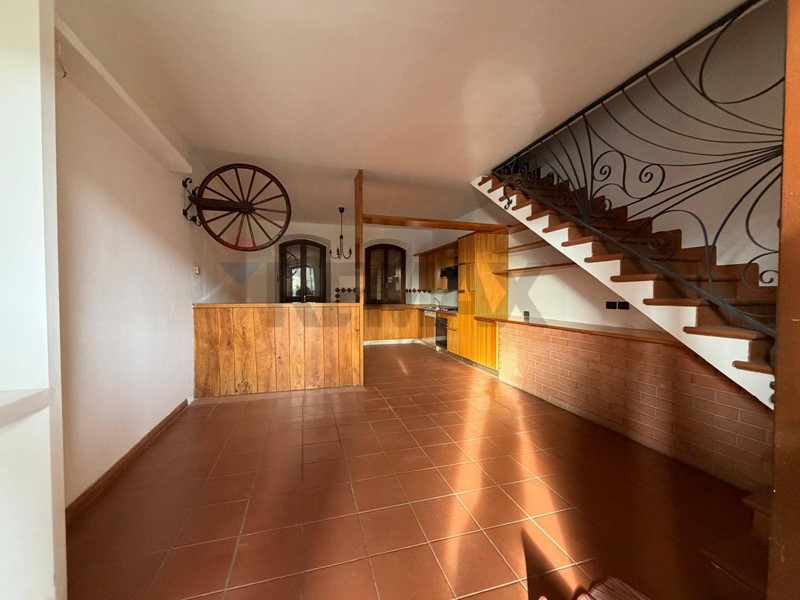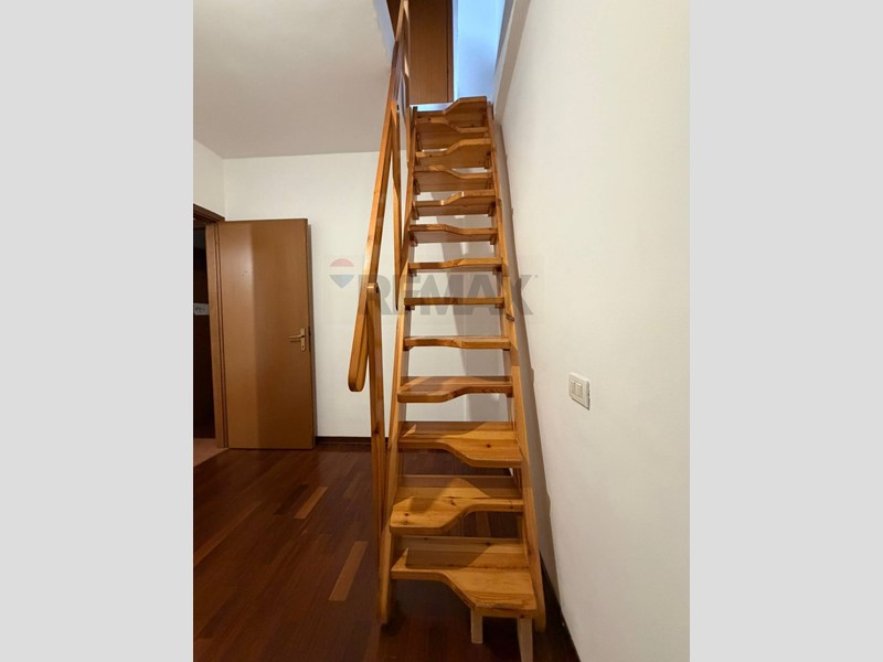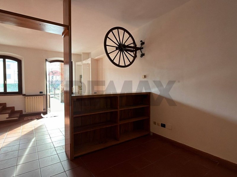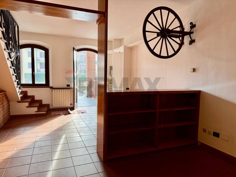 L'accesso alla abitazione è diretto sulla zona living , con pavimenti in vero cotto pregiato senza soluzione di continuità con la cucina a vista. Elemento architettonico importante è la scala a vista anch'essa rivestita in cotto lombardo che conduce al reparto notte costituito da una camera matrimoniale con balcone , bagno padronale ,e camera dei bimbi . Le camere hanno pavimentazione in parquet pregiato.
