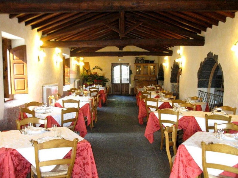 * Dettagli di Lusso Rurale: Il ristorante vanta originali pavimenti in pietra lavica a vista, creando un'atmosfera suggestiva e autentica.