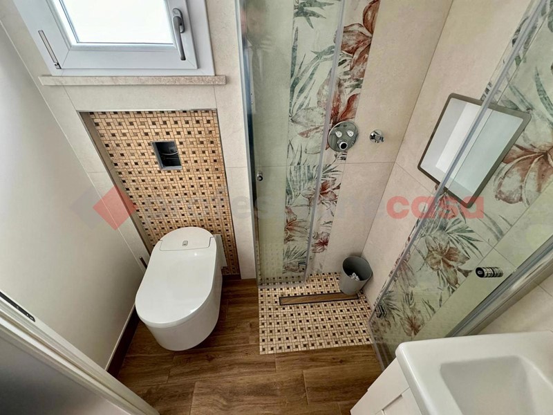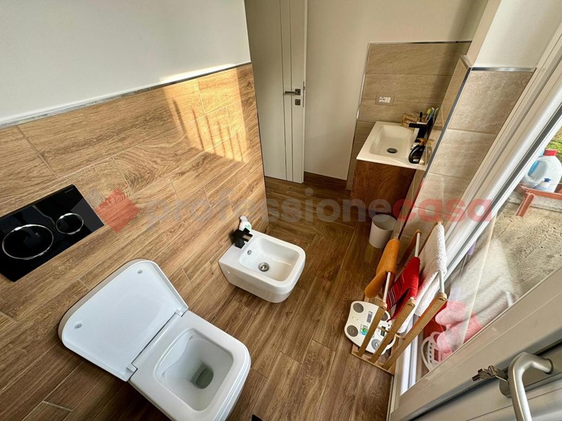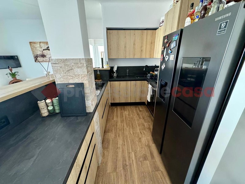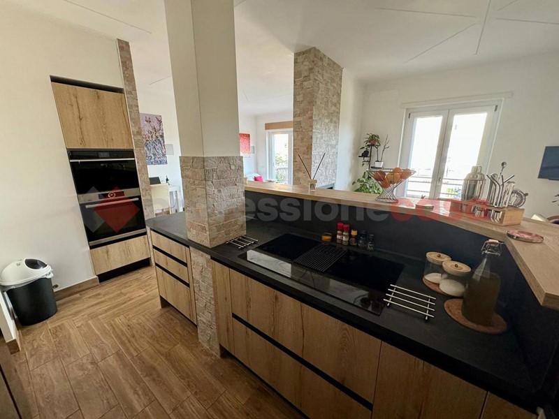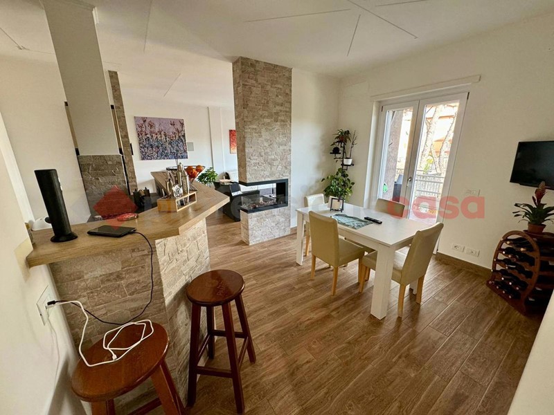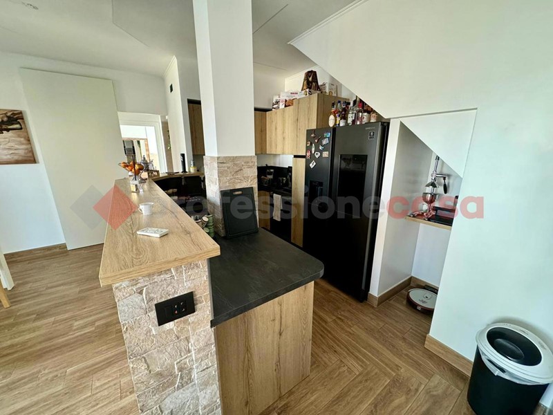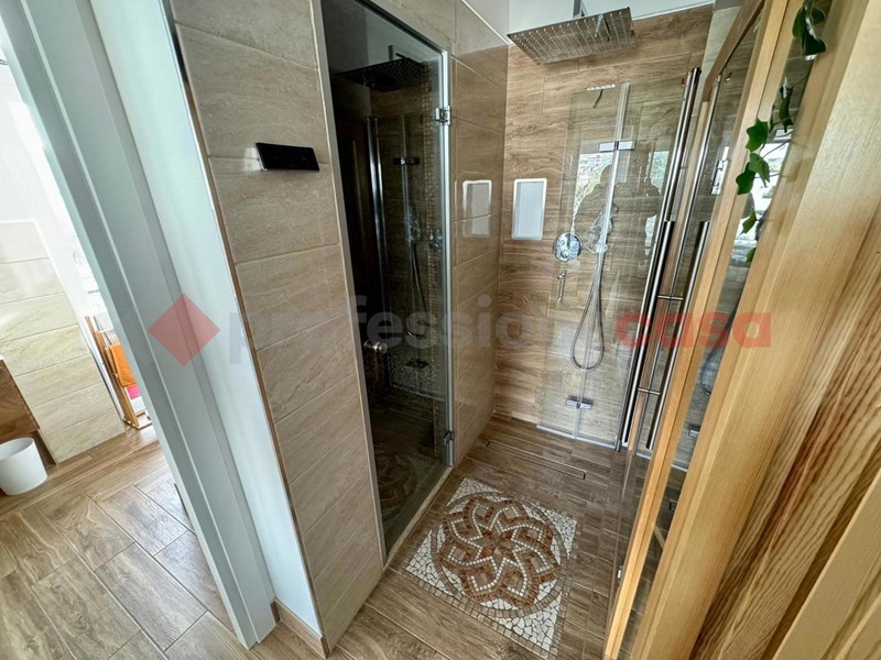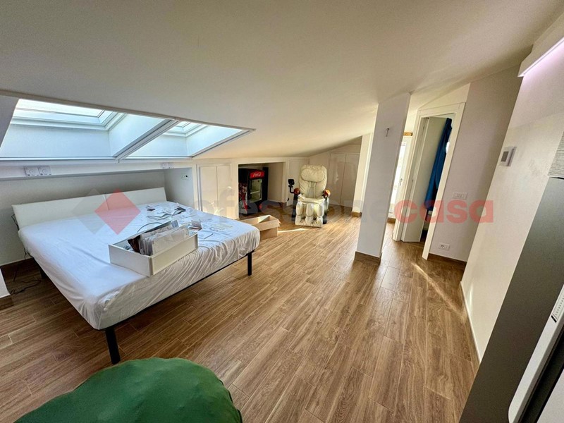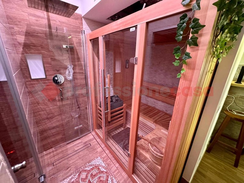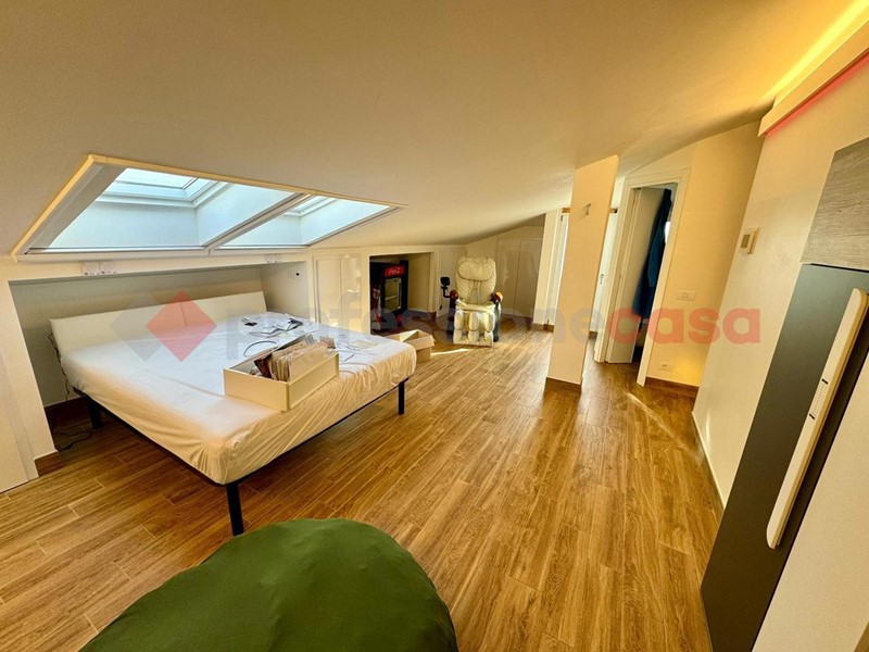 La disposizione dell'appartamento è la seguente: ampio salone con armadio a muro, sala da pranzo con uno splendido biocamino ed una uscita sul terrazzo vivibile che affaccia sul verde, cucina a vista angolare ed elettrodomestici gestibili dalla domotica, poi abbiamo un disimpegno che porta sia alla camera matrimoniale con TV che scende dal soffitto, bagno turco con doccia privata e bagno con doccia. Al secondo piano troviamo un ampia camera con doppio posto letto dotato di biocamino e velux radiocomandato , un secondo bagno con il terrazzino privato e un locale tecnico ove troviamo tutti gli impianti tecnologici dell'immobile . Tutti gli infissi e le rifiniture dell'immobile sono di alta qualità , e grazie ad esse possiamo avere una categoria energetica ben oltre la media di zona in più, in tutta casa ci sono LED e l'impianto di deumidificazione.