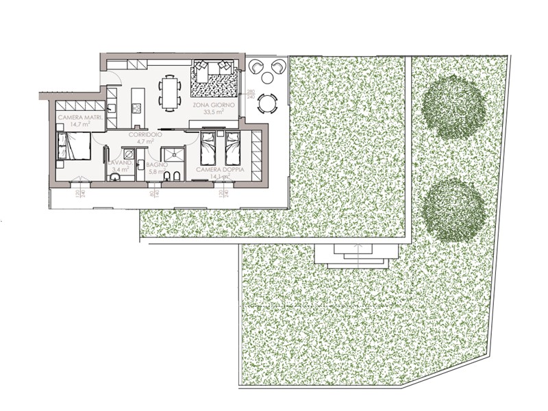 L'appartamento dispone inoltre di un ampio giardino privato, perfetto per momenti di relax all'aria aperta e per godere di momenti di tranquillità in un ambiente verde e curato. Con poche unità abitative presenti nel complesso, potrete godere di privacy e tranquillità in un contesto esclusivo e riservato.