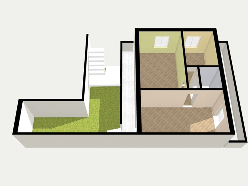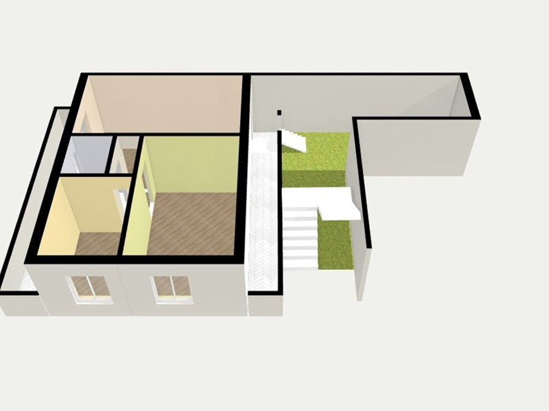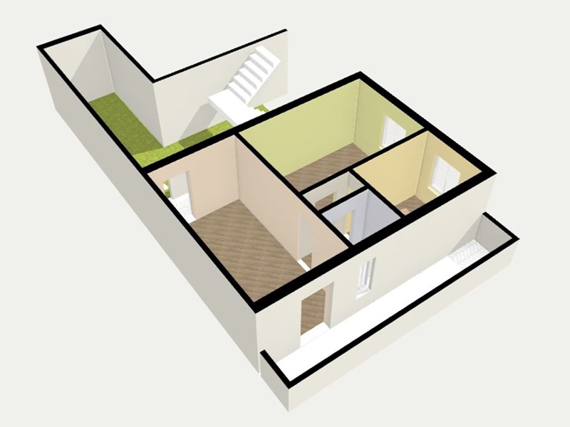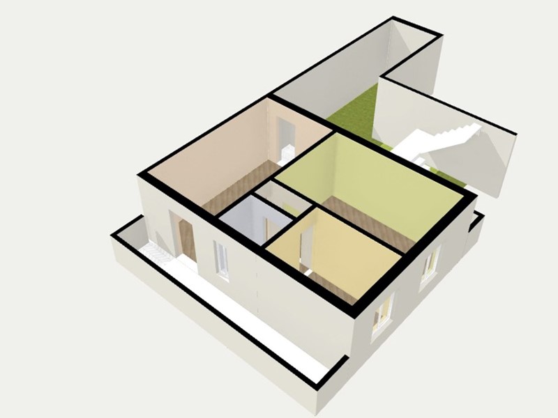 La soluzione, pronta all'uso e ben rifinita, è di 2 vani + acc.ri ed è composta da: cucina abitabile, camera da letto, cameretta e bagno.