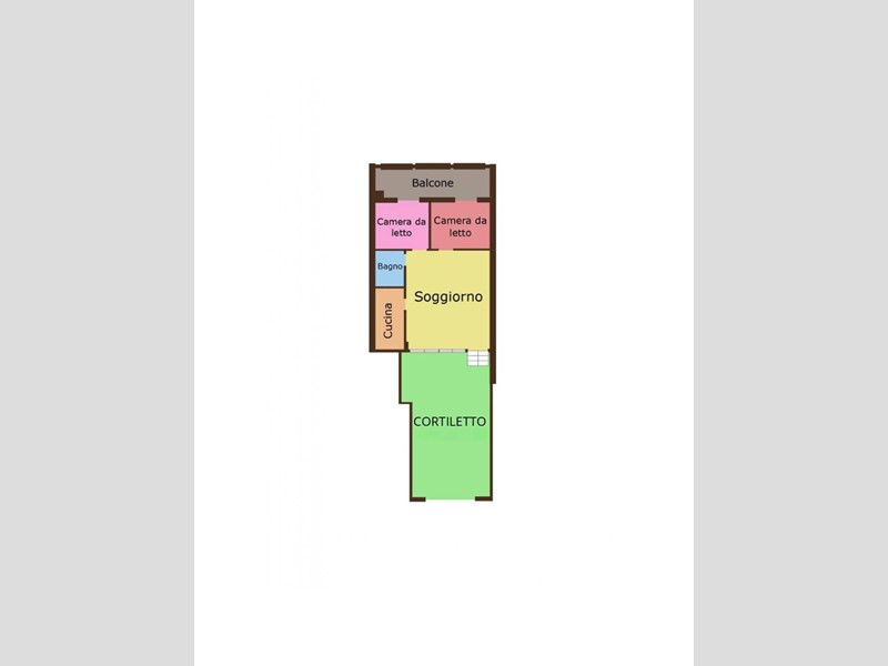 L'abitazione è composta da soggiorno con cucinotto, ambiente luminoso e accogliente, due camere da letto (una matrimoniale e una singola), oltre a balcone. Completa la proprietà un cortiletto privato, spazio esterno particolarmente apprezzabile sia per momenti di relax sia per un utilizzo pratico quotidiano, con possibilità di parcheggio auto all'interno della proprietà.