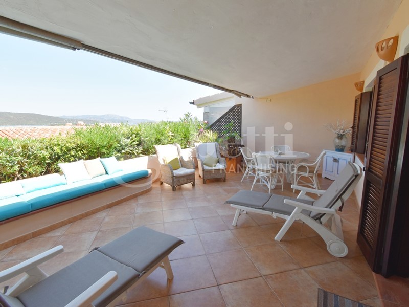 La villa dispone di una veranda coperta che offre la possibilità di godere di momenti di relax all'aria aperta, ammirando il panorama sul mare.