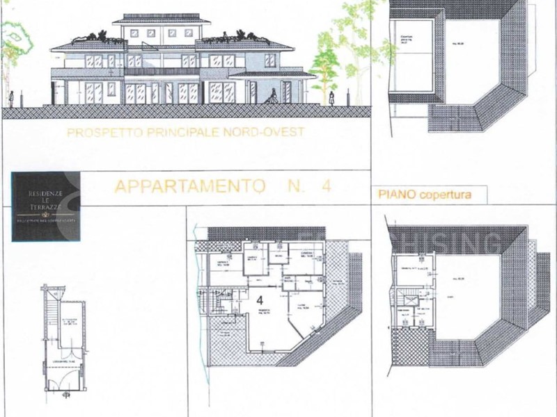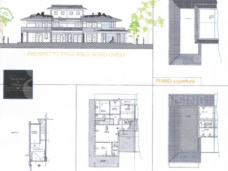 Le due porzioni di quadrifamiliare saranno circondate e costituite al piano terra da garage con loggia e l' intero appartamento si svilupperà al primo piano composto da ampio salone , tramite porta finestra, con accesso diretto alle terrazze abitabili , luminosa cucina abitabile, anch' essa con affaccio sulla terrazza abitabile , tre spaziose camere , ripostiglio e due bagni , uno a servizio della zona notte ed uno della zona giorno.