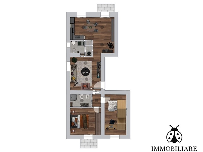 Le immagini presenti nell’annuncio sono render realistici, realizzati sulla base di un progetto di ristrutturazione studiato da noi, pensato per valorizzare al massimo gli spazi e le potenzialità dell’appartamento: seguendo il nostro progetto, vi è la possibilità di ricavare un secondo bagno.