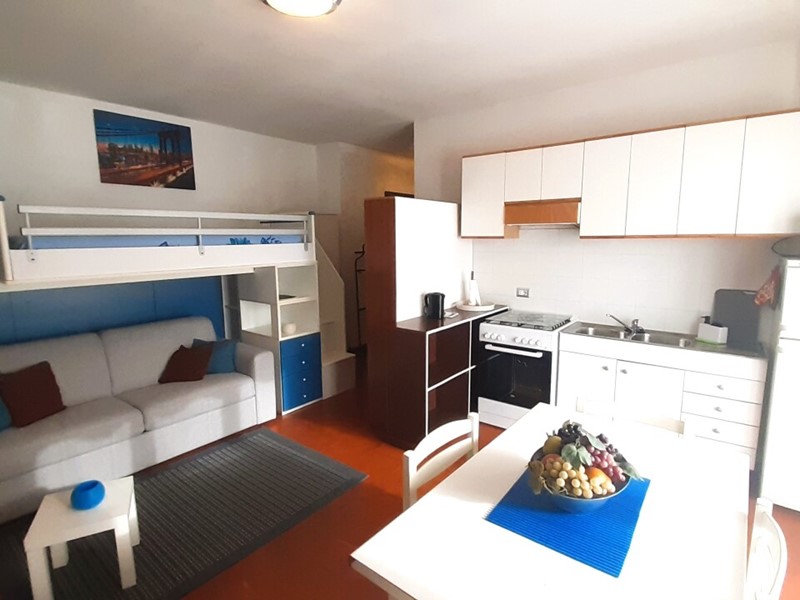DAVERIO (VA) - In piccolo condominio, sito al piano terra, grazioso monolocale ben arredato così suddiviso: ingresso, ampia e luminosa zona giorno/notte con porta finestra da cui si accede al balcone, composta da angolo cottura, divano letto e letto a ponte oltre a servizi con doccia e lavatrice.