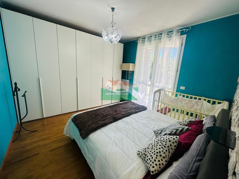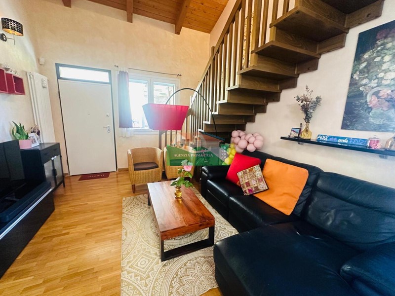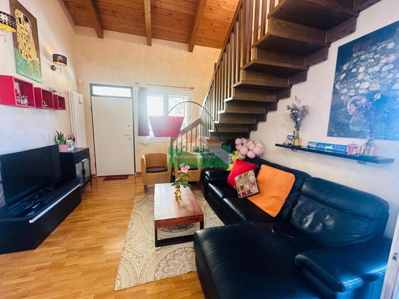 L'appartamento dispone al primo piano di due camere da letto: una matrimoniale con balcone e una singola, oltre a un bagno finestrato. Al piano superiore, una scala in arredo conduce a un'ulteriore camera mansardata e a un secondo bagno, offrendo spazio e versatilità per ogni esigenza. La presenza di un ripostiglio ad uso lavanderia aggiunge praticità alla vita quotidiana.