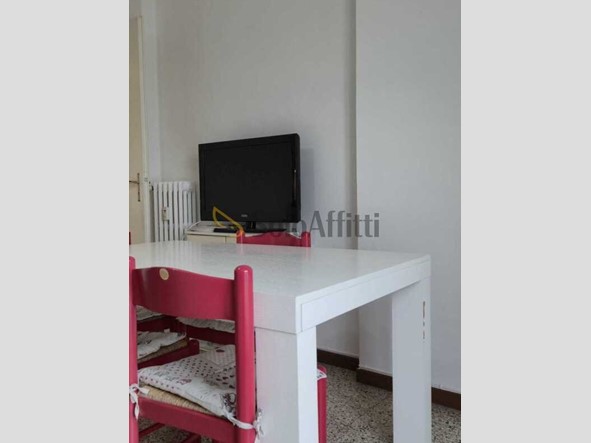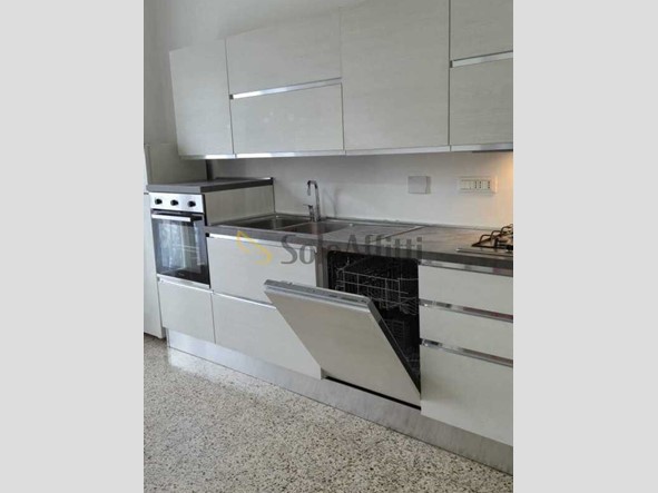 Internamente l'immobile, che viene affittato esclusivamente con contratto di tipo transitorio, si compone di: ingresso, cucina abitabile (completa di elettrodomestici quali frigorifero, forno e lavastoviglie), disimpegno adibito a salottino, camera matrimoniale, servizio con doccia, finestra e lavatrice, 2 balconi e cantina.