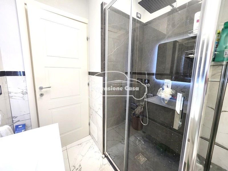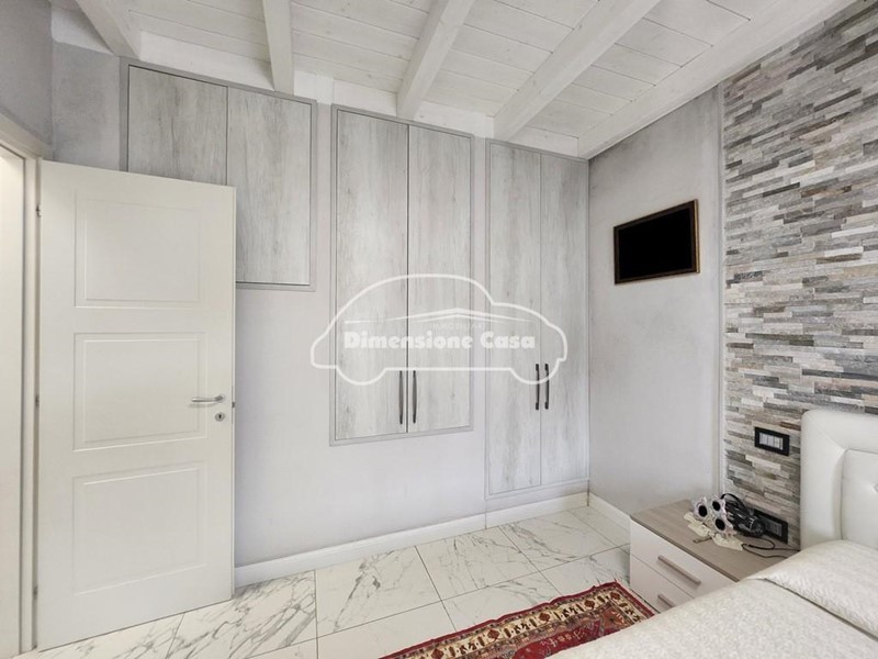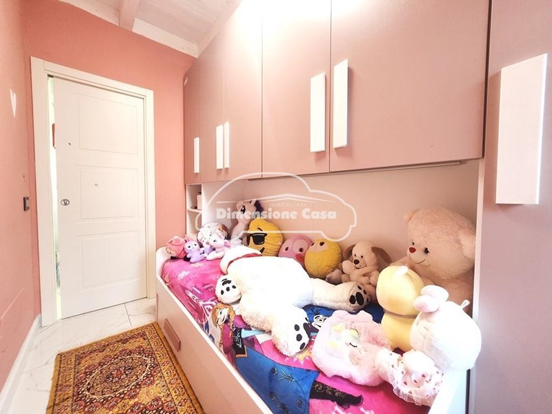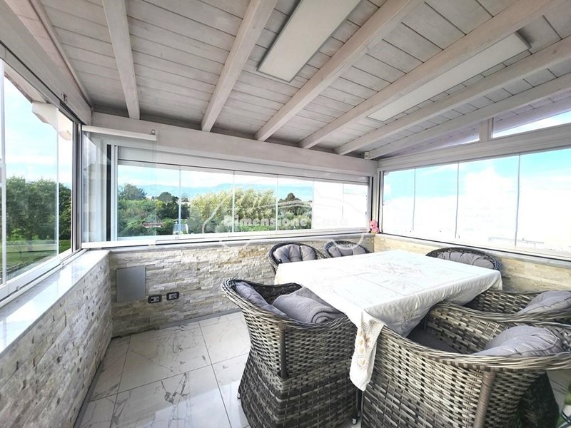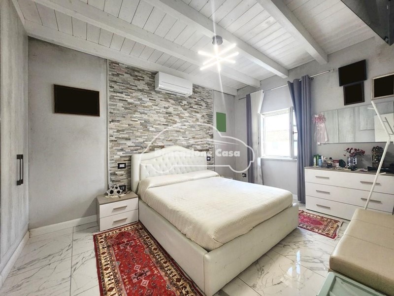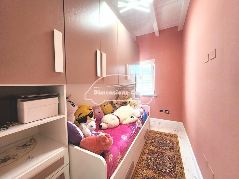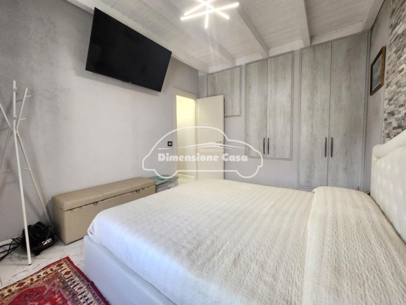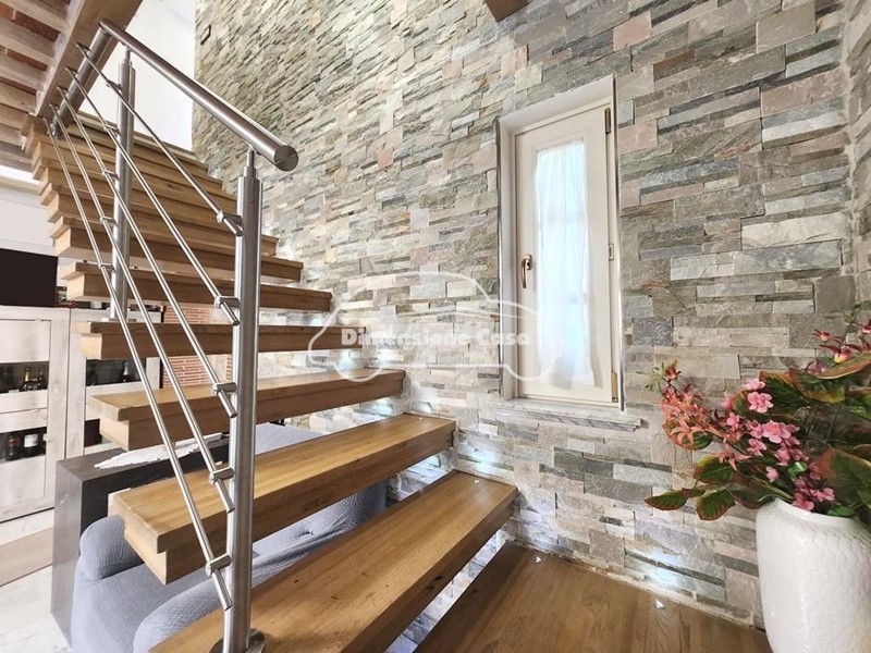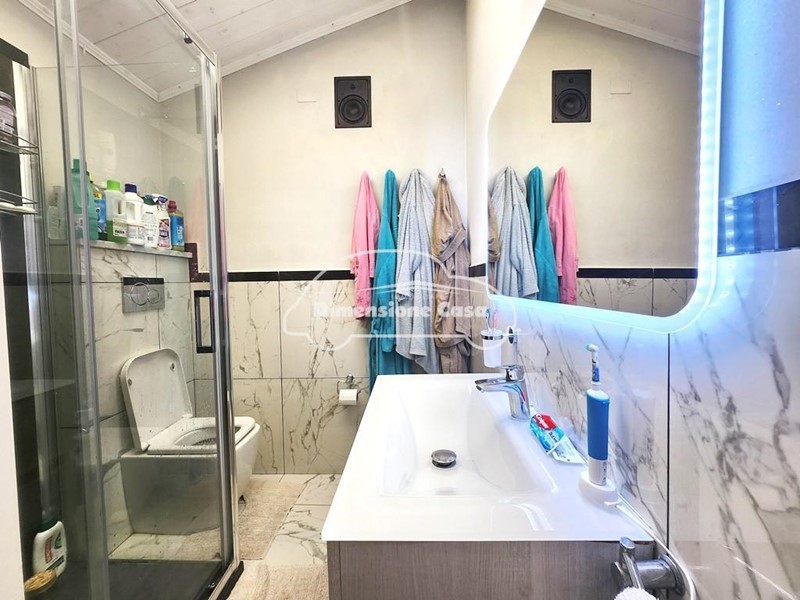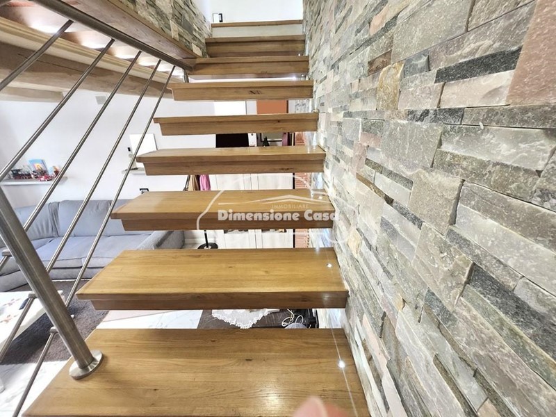 Sviluppato su due piani, si compone al piano primo di ingresso in ampio e luminoso soggiorno, cucina e w.c. di servizio; al piano secondo camera, studio-cameretta, bagno finestrato con doccia ed ampia terrazza chiusa con vetri movibili.