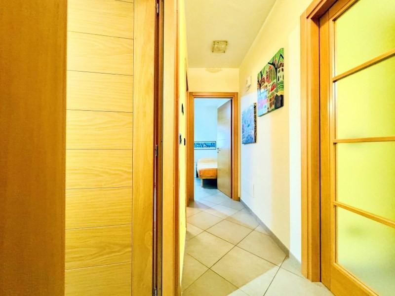L'ingresso all'abitazione avviene nella zona giorno suddivisa in angolo cottura, sala pranzo e zona TV. Attraverso la porta a finestra si fuoriesce sulla terrazza con vista sul parco limitrofo. Percorrendo il corridoio si raggiunge la zona notte. Le camere da letto sono due, una matrimoniale (2 pax) ed una doppia (2 pax). I bagni di cui possono servirsi gli ospiti sono due.