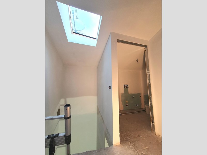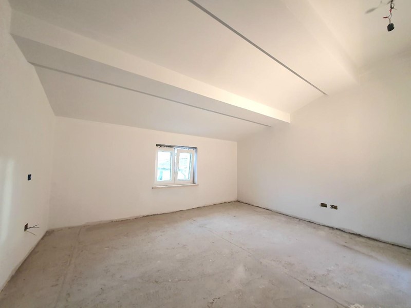 Proseguendo il piano sottotetto mansardato è molto luminoso composto dal disimpegno con lucernario che illumina la scala, un'altra camera e un secondo bagno con doccia. A corredo la resede di proprietà esclusiva con i posti auto.