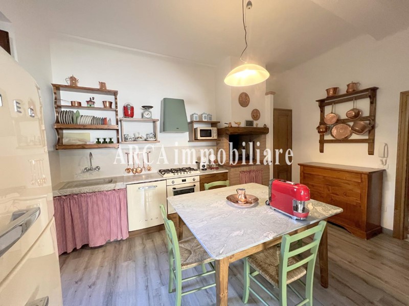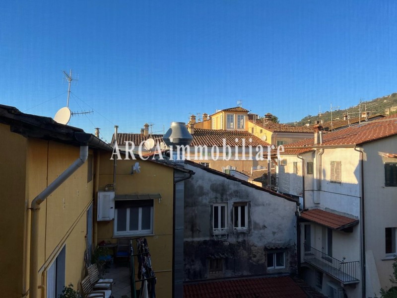 Appartamento al piano 3° ed ultimo, libero su tre lati con splendidi affacci sui tetti di Pietrasanta e molto luminoso è composto da un soggiorno-pranzo con angolo cottura e camino, 2 camere matrimoniali, bagno. Ottima posizione. I tre appartamenti hanno in comune un'ampia lavanderia-ripostiglio e bagno al piano terra. Molto interessante è anche che tutta la proprietà comprende un fondo con ingresso diretto sulla strada (ma possibile collegarlo con l'altro vano al piano terra)