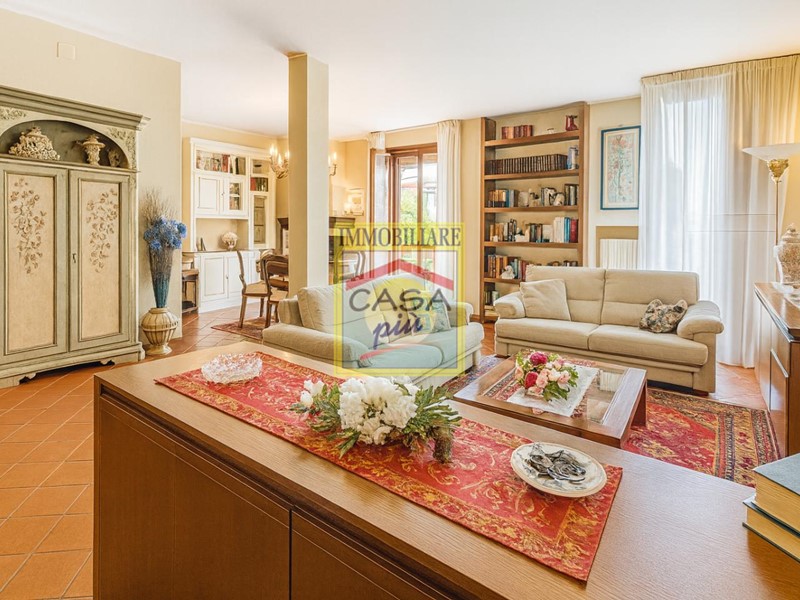 PONTEDERA - OLTRERA - Elegante villa bifamiliare con ampio che la circonda su tre lati (aperto a est, sud ed ovest), disposta su quattro livelli tra loro collegati da scala interna e composta da ampio salone con camino, cucina abitabile, bagno di servizio e lavanderia con accesso diretto al giardino; al piano superiore, quattro camere – due matrimoniali, una doppia e una singola/studio – bagno principale e due balconi . Soprastante ampia mansarda, completamente praticabile, con terrazza solarium di circa 16 mq. Al piano seminterrato garage per due auto e taverna con camino. Richiesta: € 375.000 trattabili - Rif. SE128