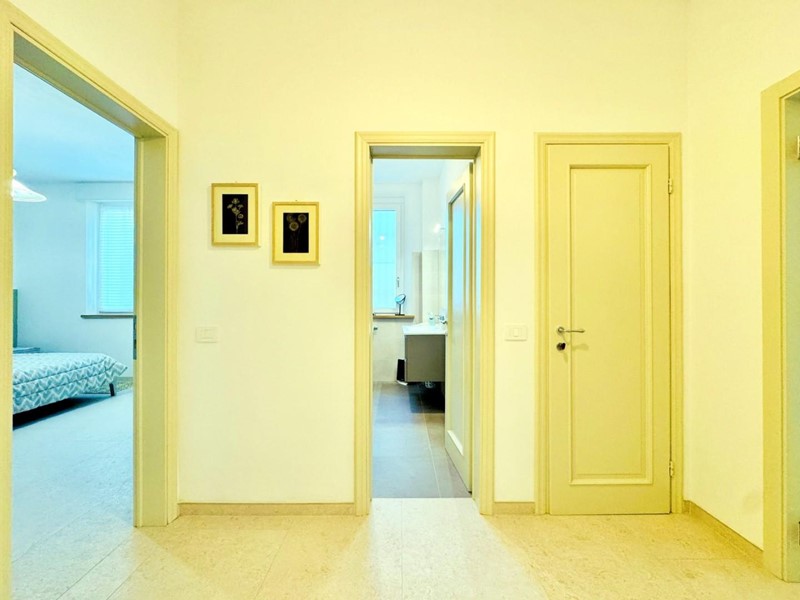 La zona notte si compone di due camere, entrambe matrimoniali, di cui una con bagno en suite. Infine, un secondo bagno è a servizio degli ospiti. Esternamente si dispone di sfogo esterno di circa 170 mq e posto auto.
