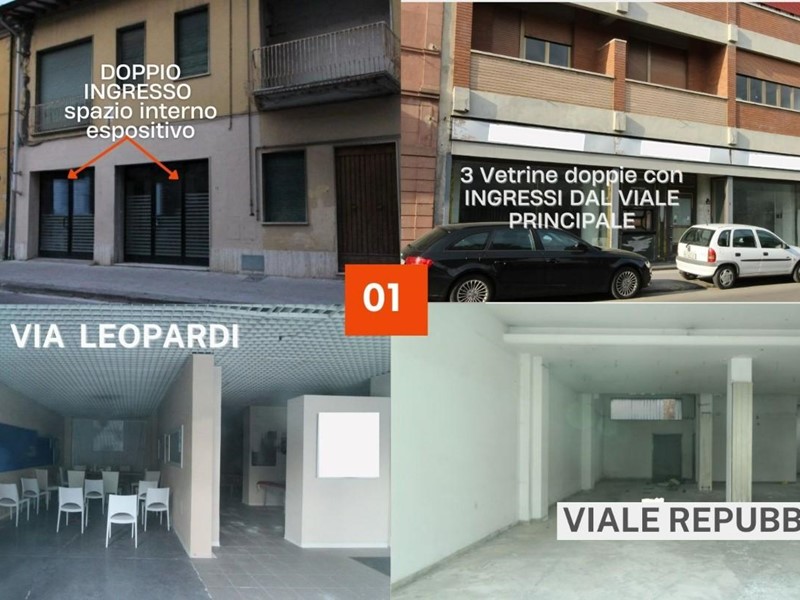 POSIZIONE: il complesso commerciale si trova nelle immediate vicinanze del centro cittadino, garantendo quindi una posizione strategica ed una visibilità importante, in quanto dotato di 3 vetrine doppie fronte strada all'ingresso principale oltre ad altre due vetrine all'ingresso laterale.