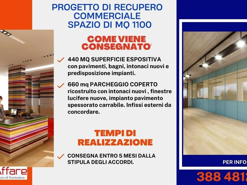 PONTEDERA centro affittasi COMPLESSO PRODUTTIVO-COMMERCIALE di 1.300 mq: uno SPAZIO INTROVABILE con queste dimensioni che sia a pochi minuti a piedi dal centro cittadino, dalla stazione ferroviaria e dall'Università Sant'Anna.