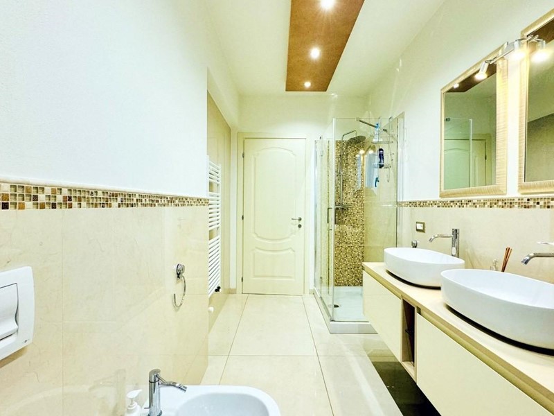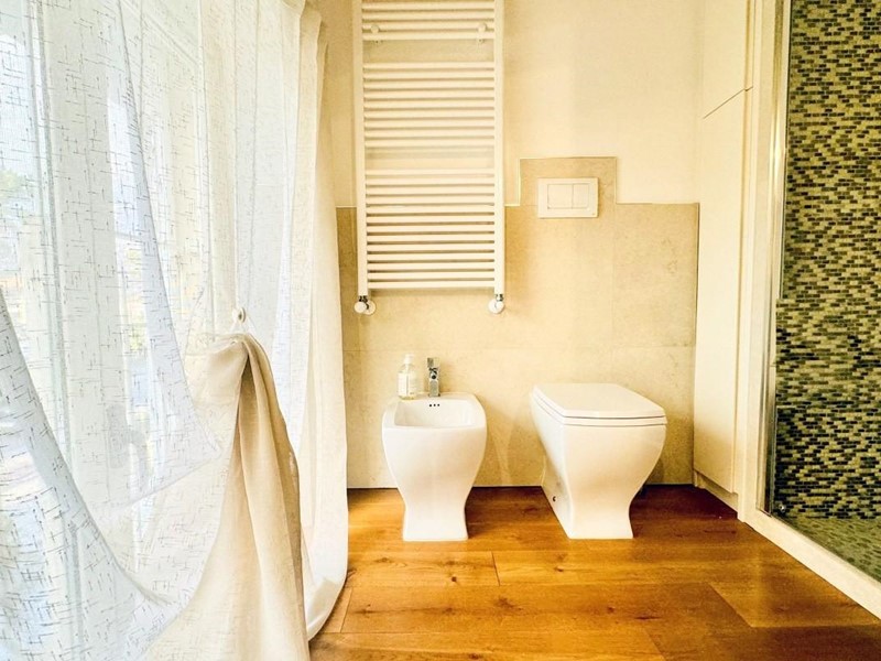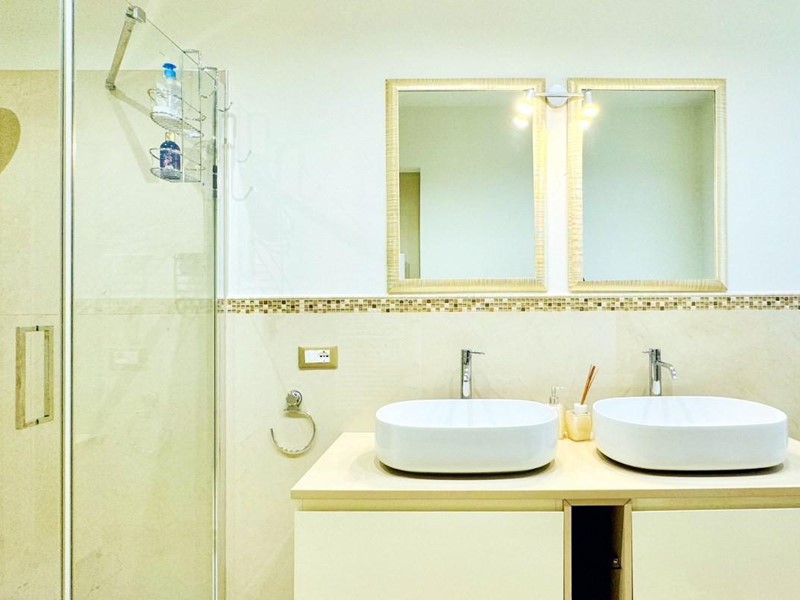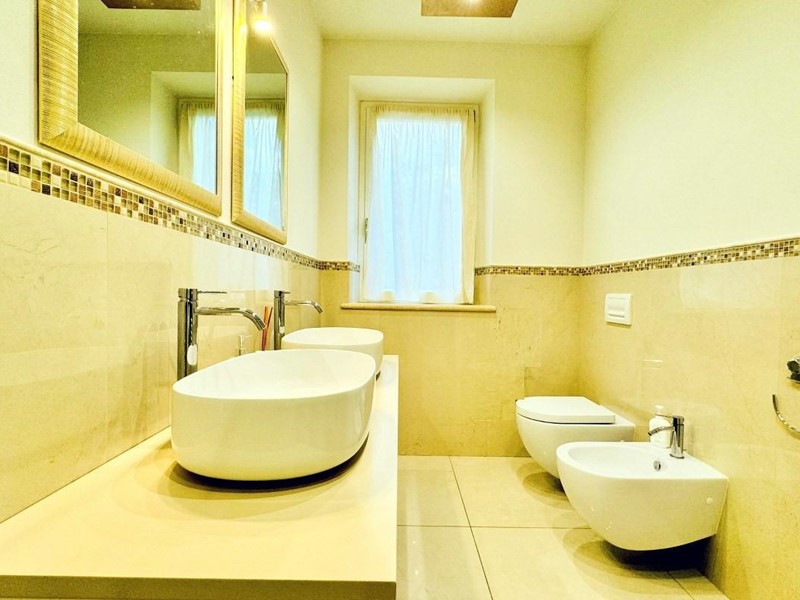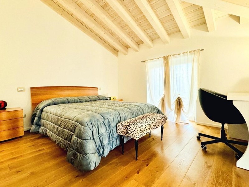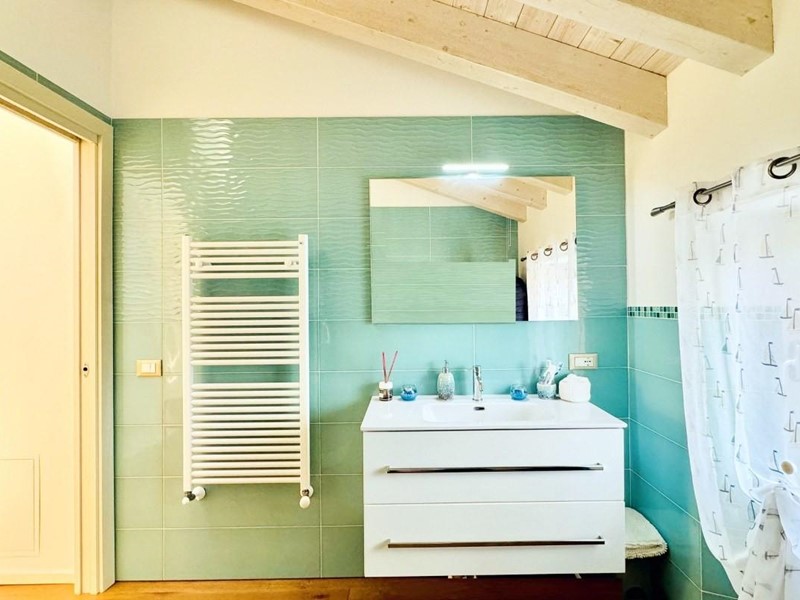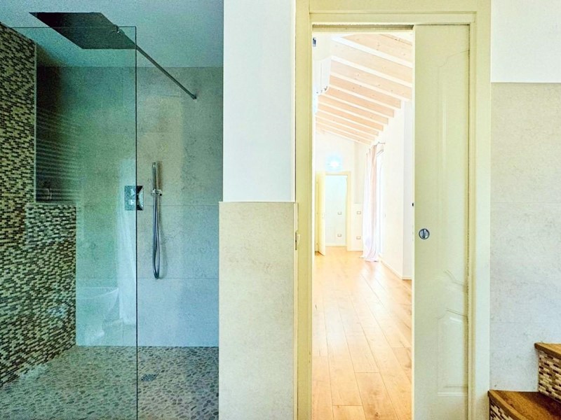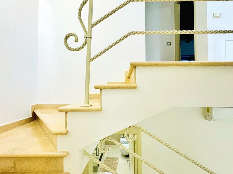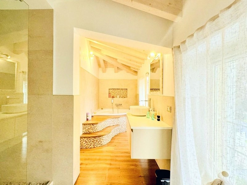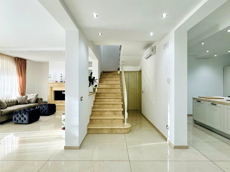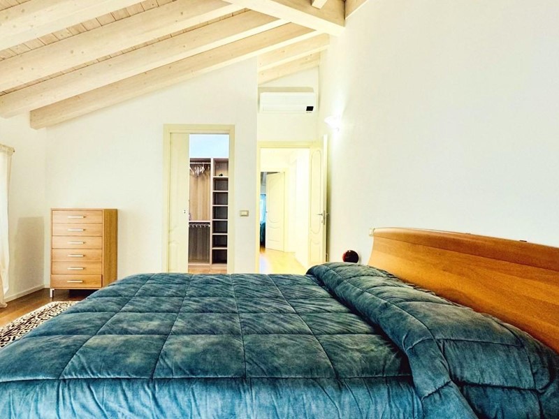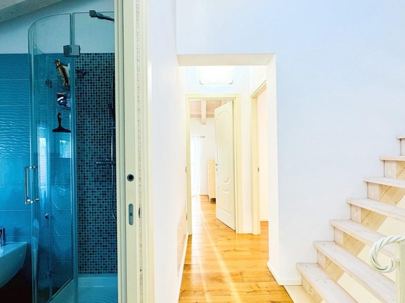 Il piano superiore ospita la zona notte, composta da quattro camere di cui due matrimoniali con cabina armadio, servite da un bagno con box doccia, una con divano-letto, ed infine la padronale con cabina armadio con bagno en suite dotato sia di box doccia che di vasca idromassaggio.