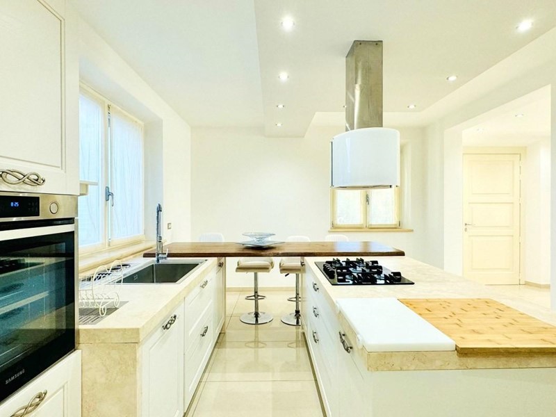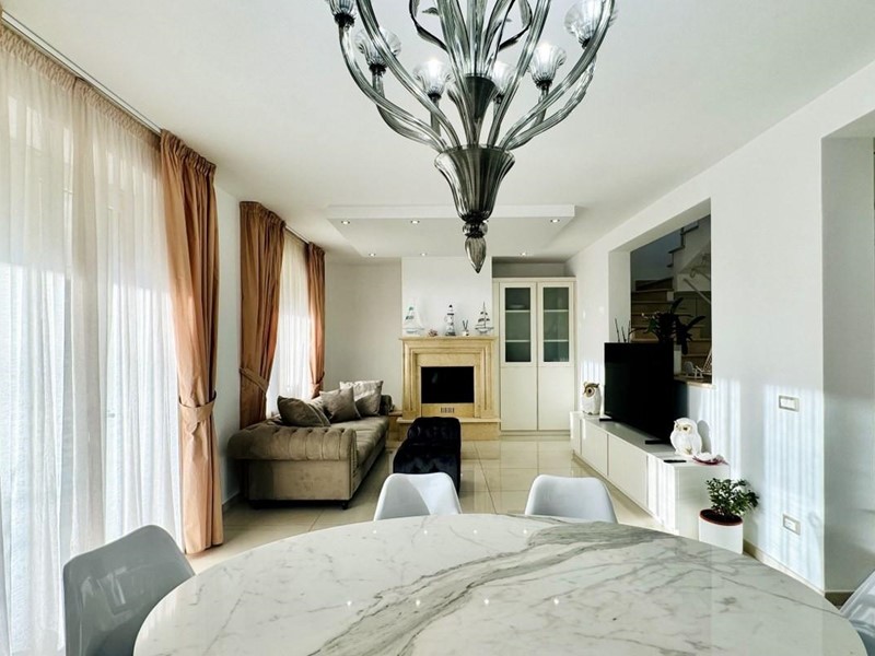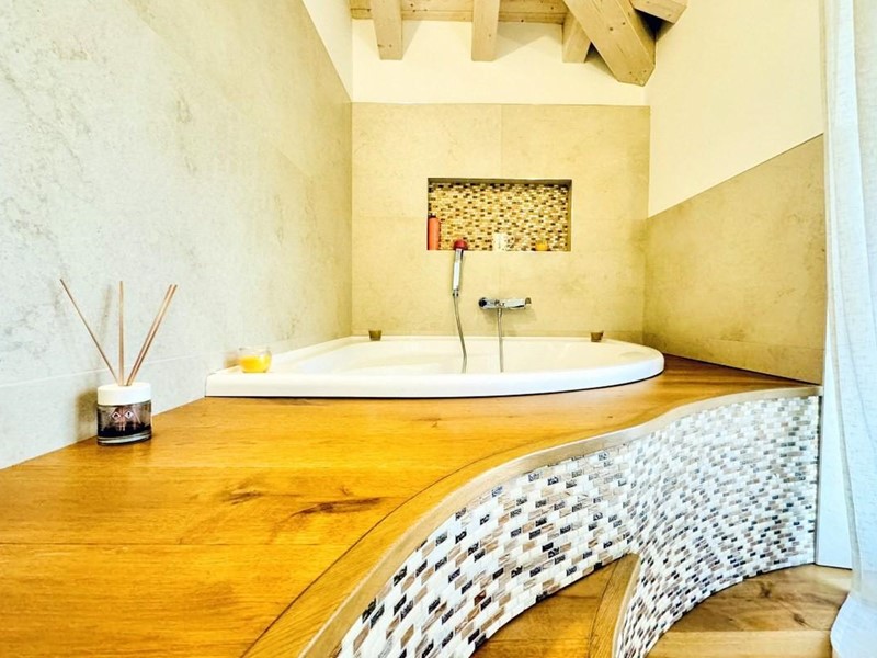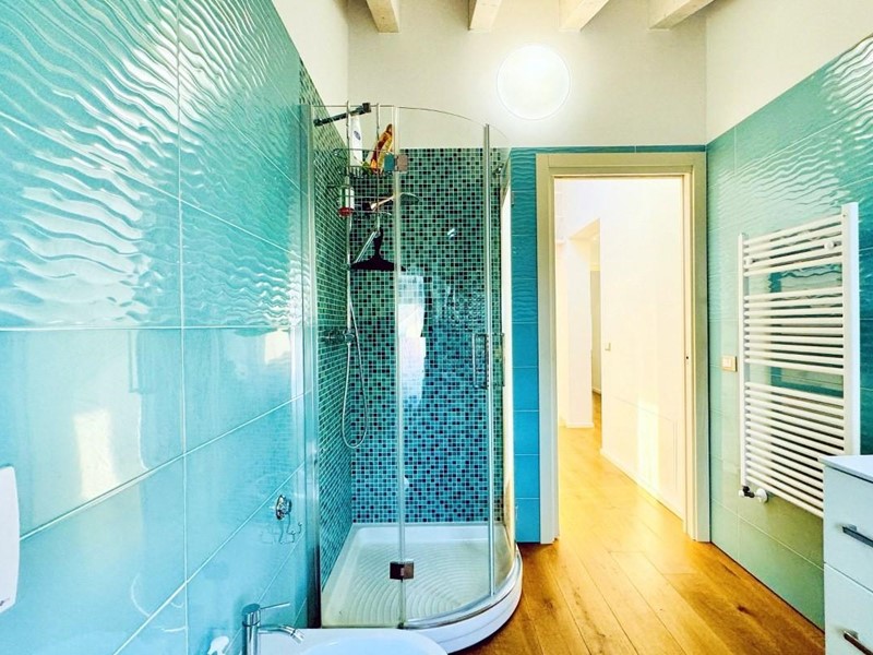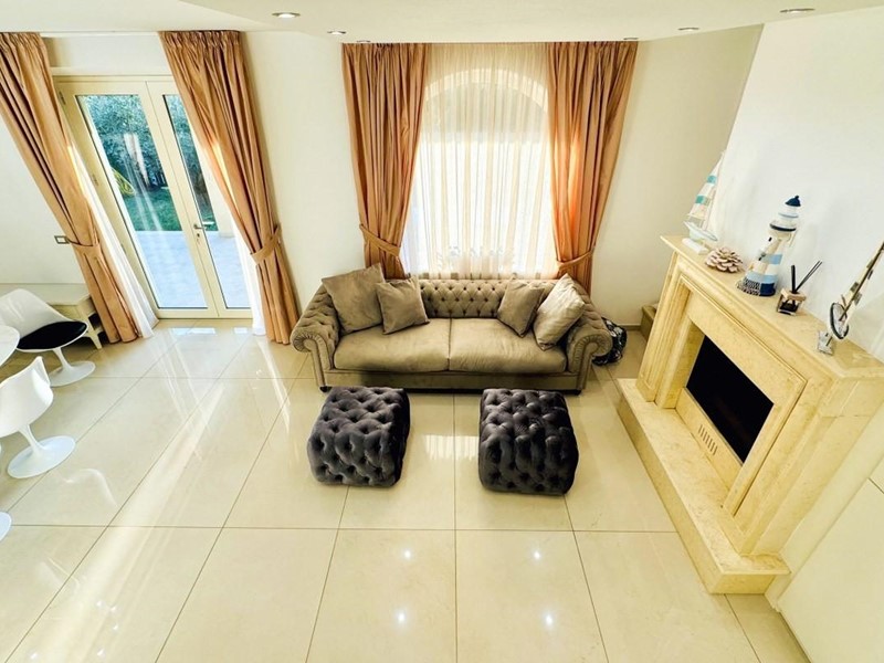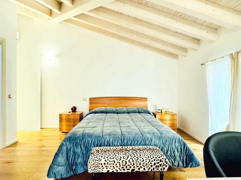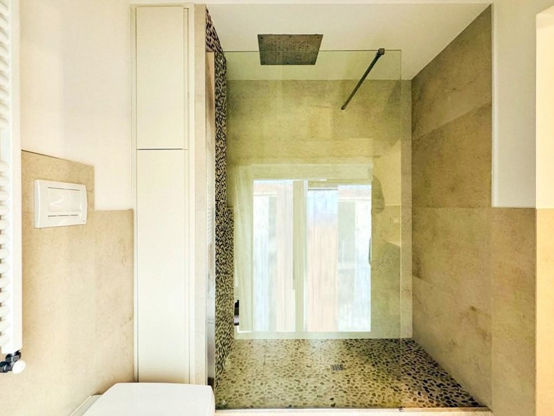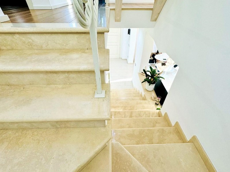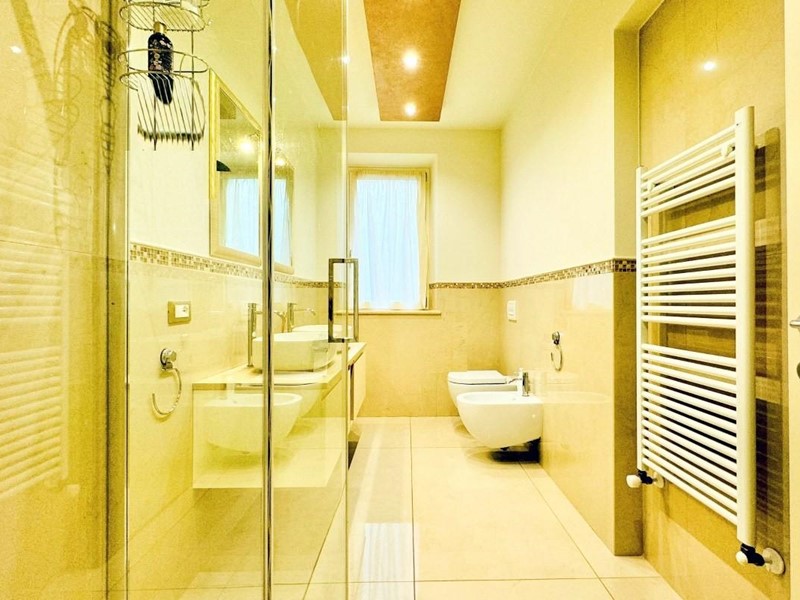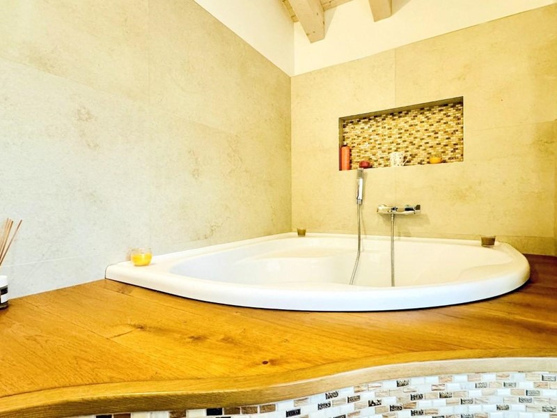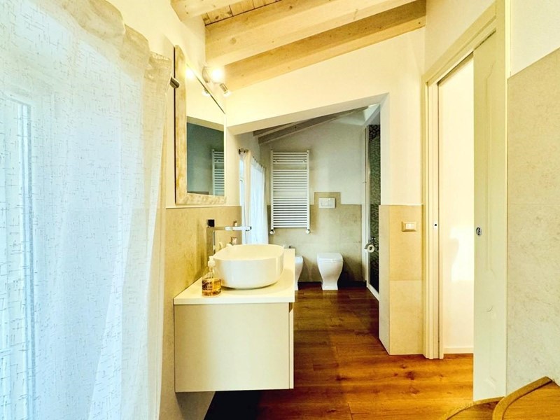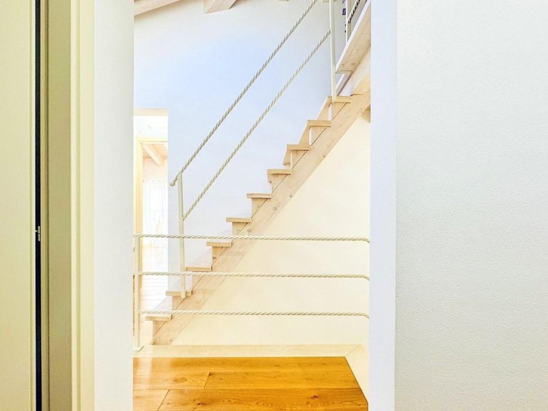 Il piano superiore ospita la zona notte, composta da quattro camere di cui due matrimoniali con cabina armadio, servite da un bagno con box doccia, una con divano-letto, ed infine la padronale con cabina armadio con bagno en suite dotato sia di box doccia che di vasca idromassaggio.
