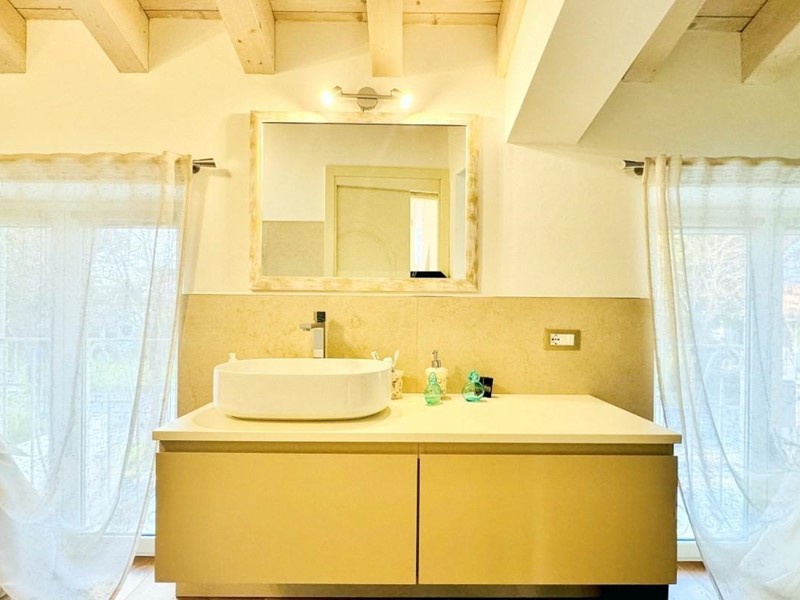 Esternamente la proprietà dispone di un rigoglioso giardino su tre lati, posto auto, forno a legna, ed una graziosa dépendance utilizzata come lavanderia.