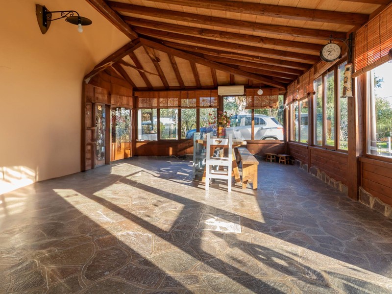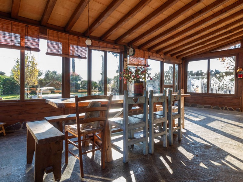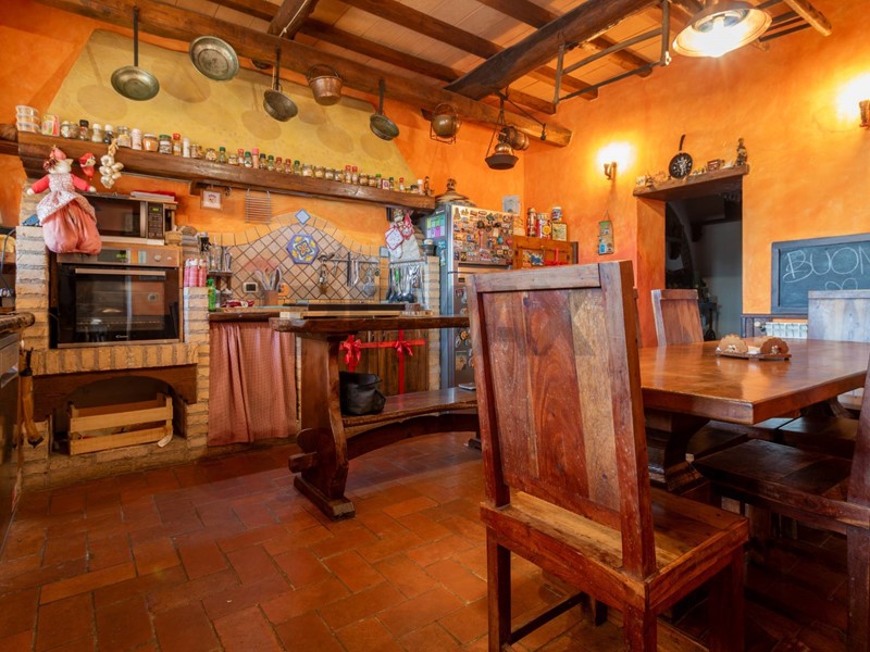 - Piano terra: elegante gazebo in legno con vetrate, ampio salone con camino (termocamino), bagno di servizio, cucina completamente arredata e spaziosa anticucina.