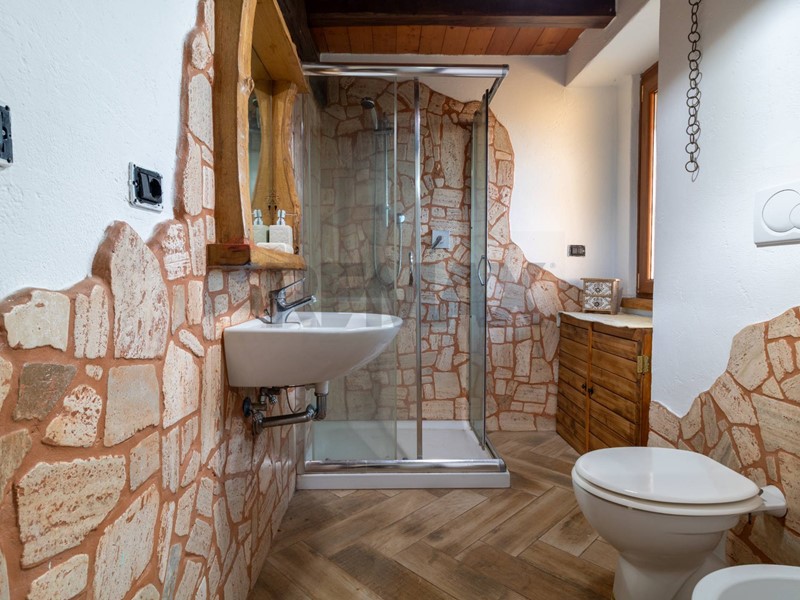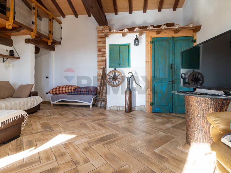 Limmobile presenta finiture di pregio, tra cui soglie interne in legno di cedro del Libano, inferriate e termocamino.