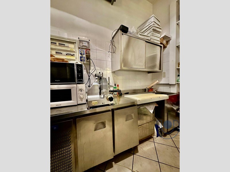 La sala è caratterizzata da soffitti alti che donano luminosità e respiro agli spazi, composta da un ampio bancone in legno, tavoli unici nel loro genere con la superficie in pietra, un locale adibito alle preparazioni culinarie ed un bagno.