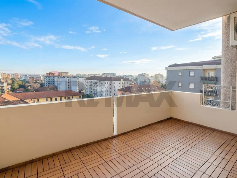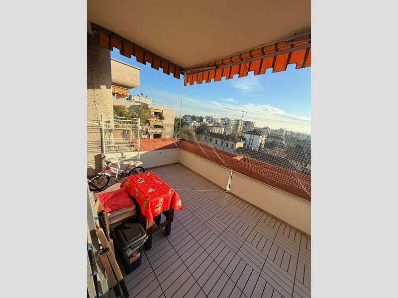 Spazioso trilocale situato al settimo ed ultimo piani 105 mq. è disposta con taglio razionale e moderno composto da ingresso nell'ampio living che racchiude il salone e la cucina entrambe con affaccio su generoso terrazzo di 12 mq esposto a sud e funzionale ripostiglio/lavanderia; la zona notte è composta da due ampie camere matrimoniali e bagno padronale finestrato. A completamento della proprietà, un vano cantina. Spese condominiali 350 mensili omnicomprensive di tutti i servizi incluso il riscaldamento e l'acqua calda. Prezzo richiesto 300.000,00 libero a 3/6 mesi dal compromesso.