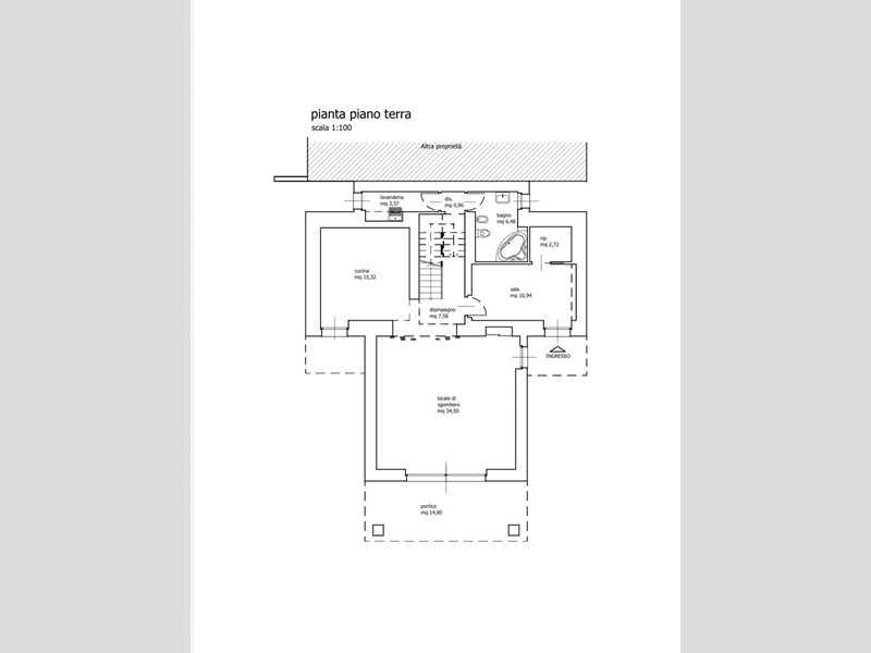 Immobile disposto su due livelli oltre al piano mansardato ed al piano interrato. Al piano terra composta da: Ingresso su ampio salone con ampia vetrata che affaccia sul portico, cucina abitabile, una camera da letto matrimoniale con cabina armadi, un bagno finestrato ed una lavanderia.