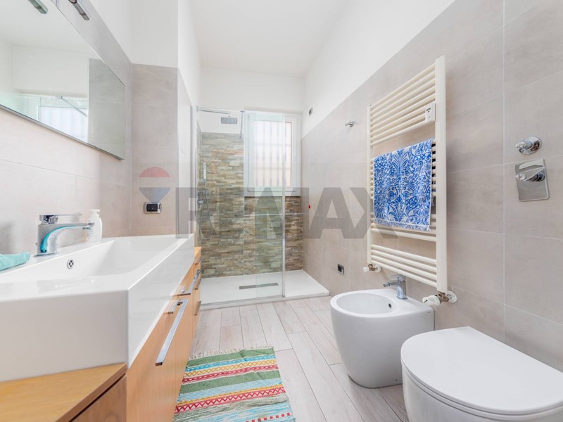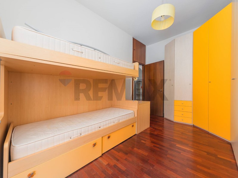 Appartamento di 3 locali e doppi servizi di ampia metratura composto da ingresso nel disimpegno, cucina abitabile completa di tutti gli elettrodomestici, ampio salone con terrazzo loggiato che affaccia su verde condominiale, due camere da letto matrimoniali e doppi servizi entrambe finestrati, completa la locazione un vano cantina.