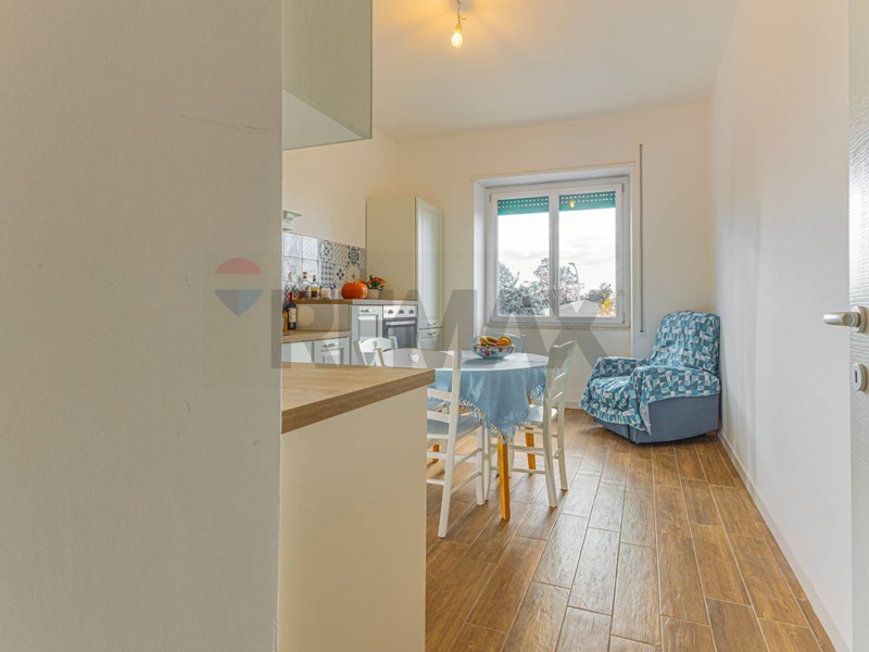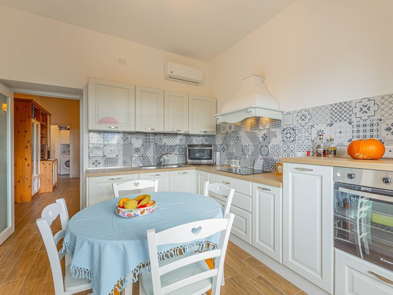 Lingresso separato accompagna verso un elegante soggiornosala da pranzo, accogliente e luminoso. La cucina abitabile, con affaccio su Via Luna e Sole, è funzionale e ben organizzata.