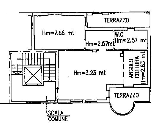 L'appartamento è dotato di due terrazzi, uno a servizio della zona giorno ed un altro a servizio della zona notte.