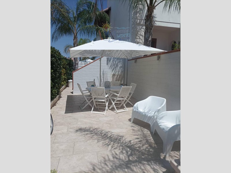 Siamo felici di presentare questa meravigliosa casa completamente ristrutturata e accessoriata, situata in una posizione invidiabile, a pochi passi dal mare, nella zona di Campomarino di Maruggio, nel complesso residenziale "Orchidea".