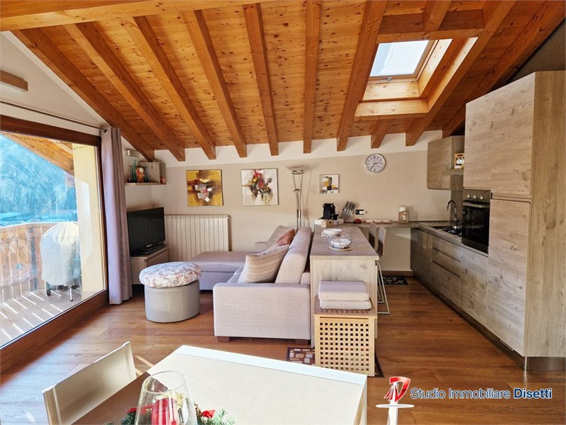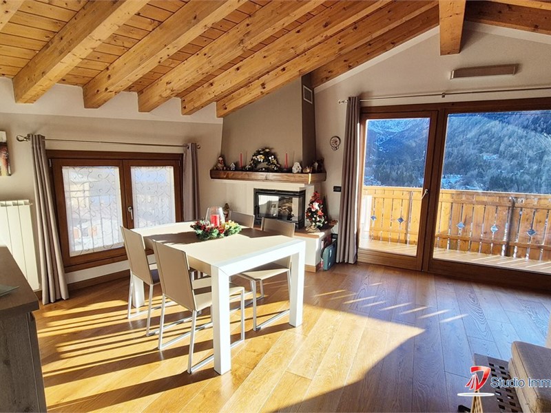 Nell'esclusiva località di Temù proponiamo in vendita prestigioso attico sito al terzo ed ultimo piano servito da ascensore con accesso esclusivo al piano composto da un ampio soggiorno con grande vetrata panoramica che regala un'incantevole vista sulle piste di sci e sull'Adamello, cucina abitabile, balcone, tre camere da letto, due bagni finestrati con doccia e vasca. Completano l'unità pianerottolo privato, cantina al piano terra e box auto privato nelle vicinanze.\nSoluzione ideale sia come prima casa che come casa vacanze di prestigio o investimento di valore. \nPerfetto per chi cerca privacy, comfort e una vista impareggiabile. - Maggiori Dettagli: Cucina Abitabile, Porta blindata, Camino
