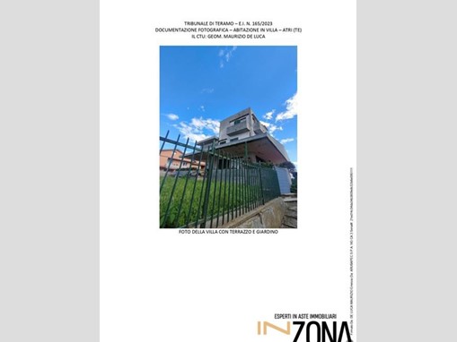 ASTA --- prezzo and euro;93.940,00 - risparmio and euro;281.000\nDiritti pari alla piena proprietà su villa ubicata a Atri (TE), Via del Risorgimento, costituita da p.S1, p. terra, p.1° e p. 2°, della consistenza di 12,5 vani. Il bene è composto da: abitazione di mq 220,00 circa; balconi-terrazzo di mq 54,00 circa; garage, fondaco, soffitta per mq 89,10 circa; giardino esclusivo di mq 54,00 circa. Totale superficie convenzionale di mq 417,10 circa. Disponibilità: Occupato.\n\nData di vendita\n25/02/2026 10:30\n\nPrezzo base d'asta\n125.250,00 and euro;\nOfferta minima\n93.940,00 and euro;\n\nL'esattezza di tutti i dati pubblicati sarà confermata in sede di consulenza.\nTi piacerebbe comprare una casa all'asta ma non sai come fare perché non sei un esperto?\n\nContattaci per avere maggiori informazioni su questo immobile e su come poterlo acquistare in totale sicurezza.\n\nINZONA offre un servizio di ASSISTENZA TECNICO - LEGALE per l'acquisto di immobili in asta attraverso queste attività:\n\nPRIMA CONSULENZA Appuntamento presso la nostra sede di Mosciano Sant' Angelo Viale Europa 23 per offrire chiarimenti sulle aste ed ascoltare le tue esigenze immobiliari.\nMEDIAZIONE CREDITIZIA Servizio esclusivo ad alto valore aggiunto, proponendo un ventaglio di prodotti tra i più completi con studio fattibilità per la partecipazione in asta con mutuo fino al 100%\n- Studio della perizia e della documentazione dell'immobile\n- Accertamenti catastali per eventuali abusi edilizi\n- Accompagnamento Visita Immobile\n- Disbrigo pratiche per la partecipazione all'asta\n- Rappresentanza Legale il giorno della vendita\n- Rilascio del decreto di trasferimento in tempi brevi\n- Assistenza per il Saldo Prezzo\n- Compilazione F24 per Tasse\n- Disbrigo Pratiche per Eventuale Sanatoria\n- Assistenza alla Consegna Immobile\n\nPer maggiori informazioni inviaci un messaggio\n\n\n\n