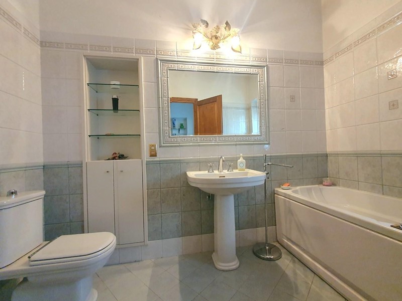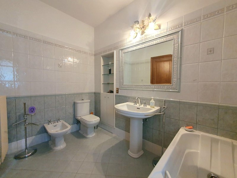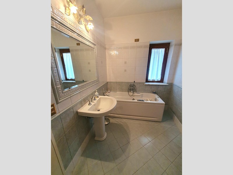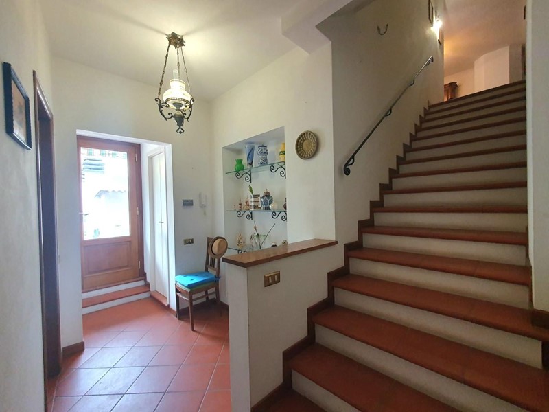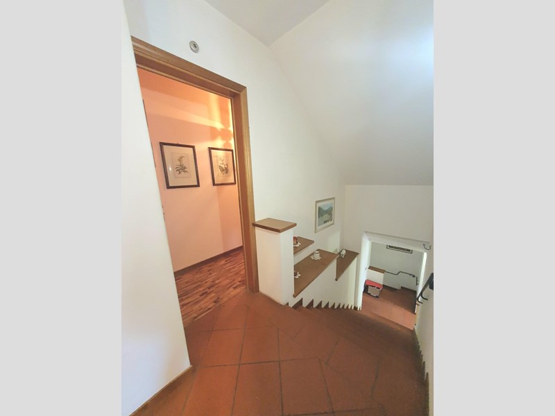 Proseguendo all'interno, la comoda scala rivestita in cotto ci accompagna al piano primo composto da disimpegno, una stanza multiuso e un ampio bagno con vasca. Inoltre dal disimpegno si accede alla bella terrazza di circa 35 mq collegata tramite pochi scalini al giardino e al piccolo annesso.