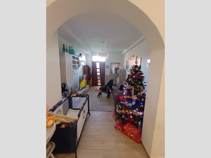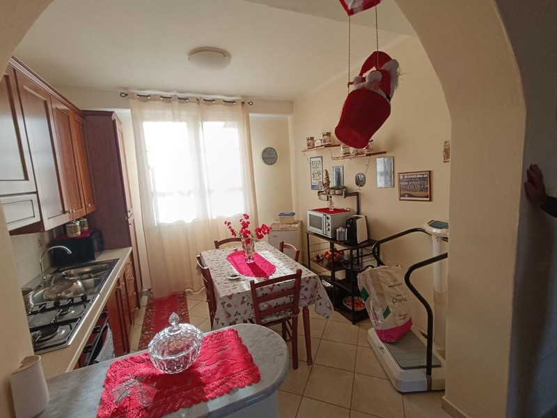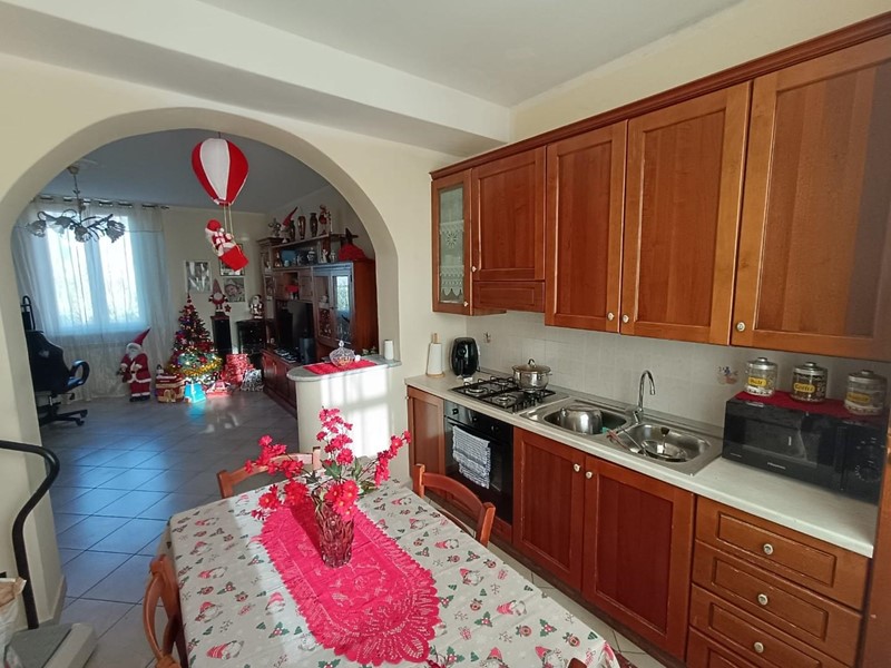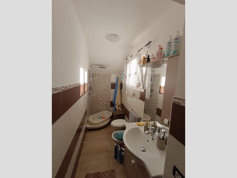 Gli altri ambienti del primo piano sono raggiungibili tramite scala esterna, che conduce a un terrazzino, e comprendono uno spazioso soggiorno con cucina a vista, una camera matrimoniale, una camera singola e un bagno finestrato con doccia in ottime condizioni.