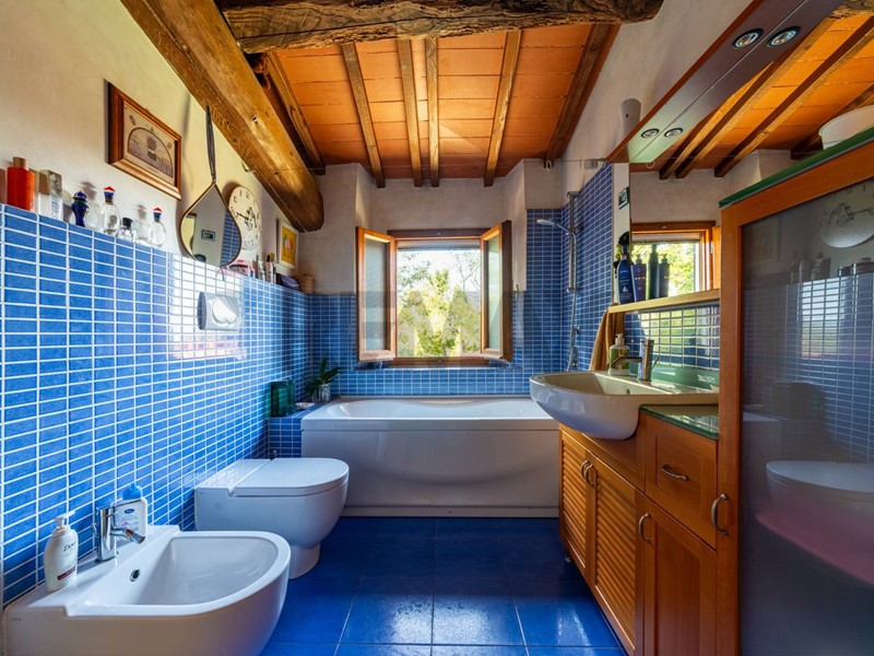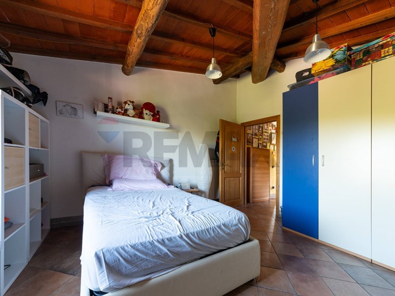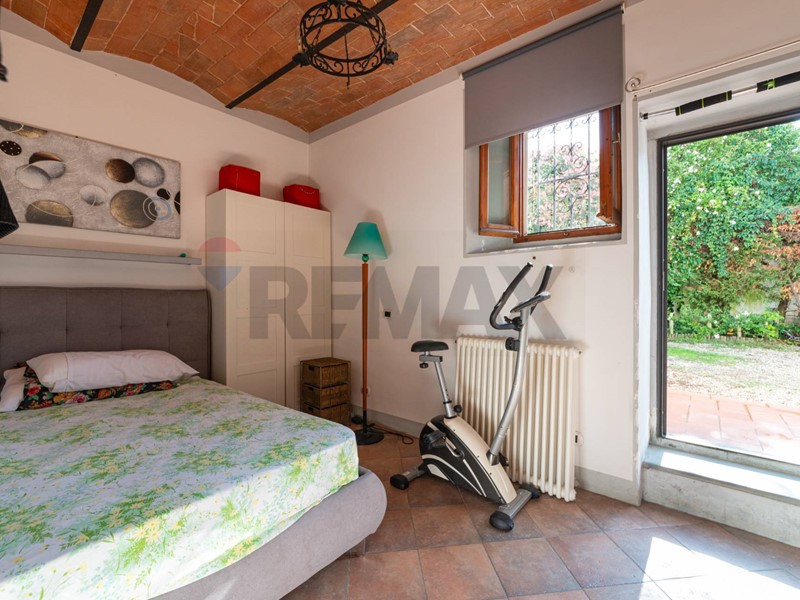 Dal disimpegno della zona notte, possiamo accedere al piano terra mediante una scala in legno a giorno che porta ad una cucina - soggiorno, collegata al resede mediante lingresso del piano terra. Dalla cucina soggiorno possiamo accedere, tramite un altro disimpegno, ad una terza camera, al secondo bagno e ad una ulteriore stanza, attualmente adibita a laboratorio adatto a svariati lavoretti ed attività. Il laboratorio possiede anche un ingresso indipendente, direttamente dal resede.
