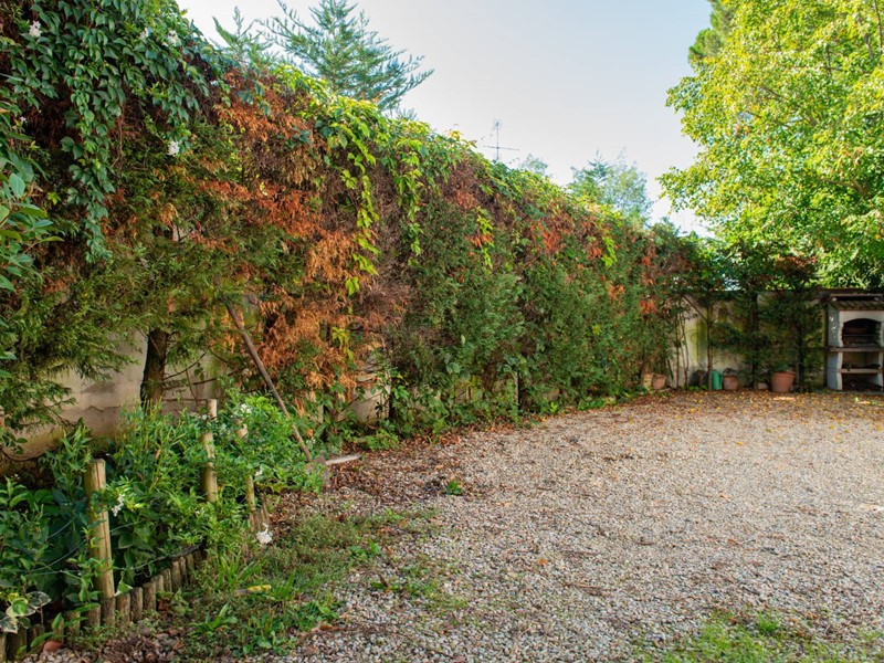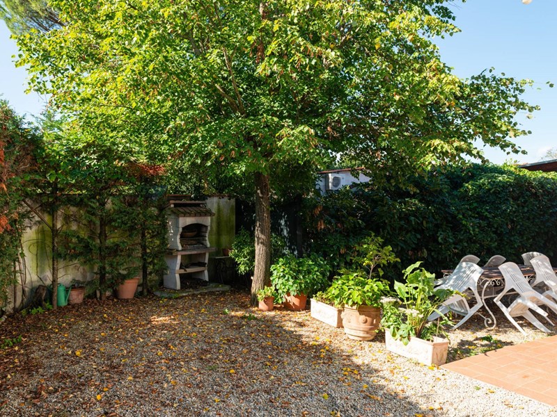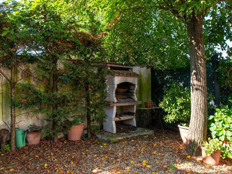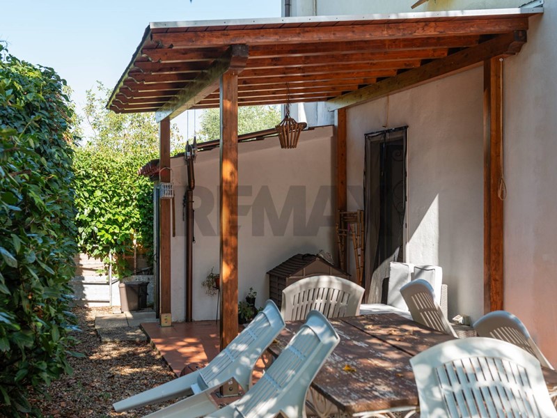 Come già descritto, nella cucina soggiorno, troviamo il secondo ingresso, il quale mette in collegamento questa porzione di casa con la zona del resede caratterizzata da un comodo pergolato perfetto per cene estive o per semplici momenti di convivialità tra familiari o amici.