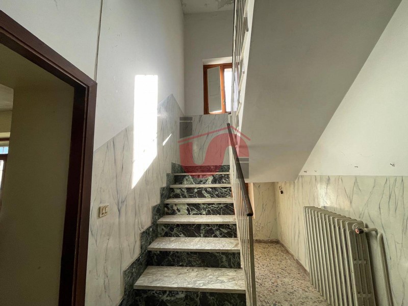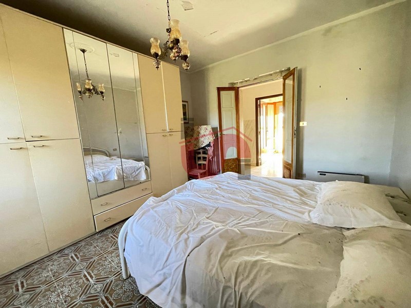 La casa è disposta su due livelli di cui uno al piano terraneo e l'altro al piano seminterrato e dispone di 8 stanze complessivamente, allo stato utilizzate in forma promiscua ; un ingresso, 3 camere da letto, un salone un bagno, un ripostiglio al piano terraneo più ulteriore bagno, 2 cantine contigue, un tinello, una sala da pranzo e 2 cucine al piano seminterrato.
