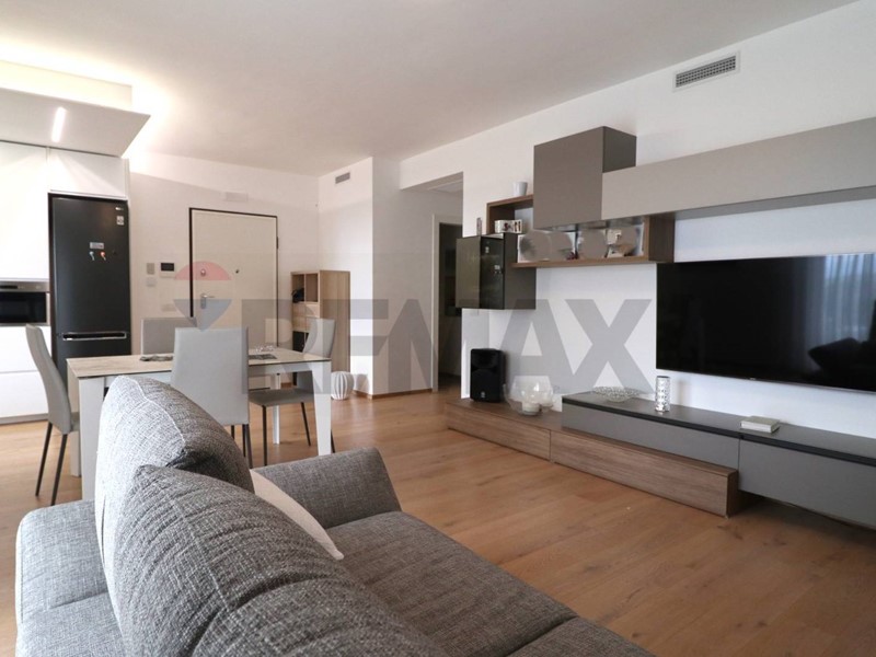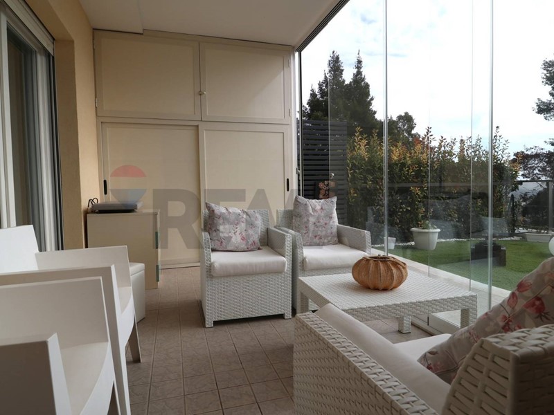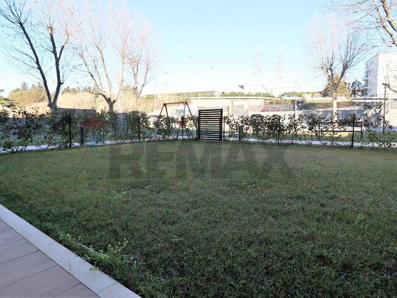 Il complesso è racchiuso all'interno di un'ampia area destinata a verde condominiale, a parco attrezzato ed a parcheggi condominiali e l'appartamento in questione ubicato a piano terra ha una superficie interna di 95 mq oltre ad una veranda da 10mq ed un giardino fronte/retro da 125mq.